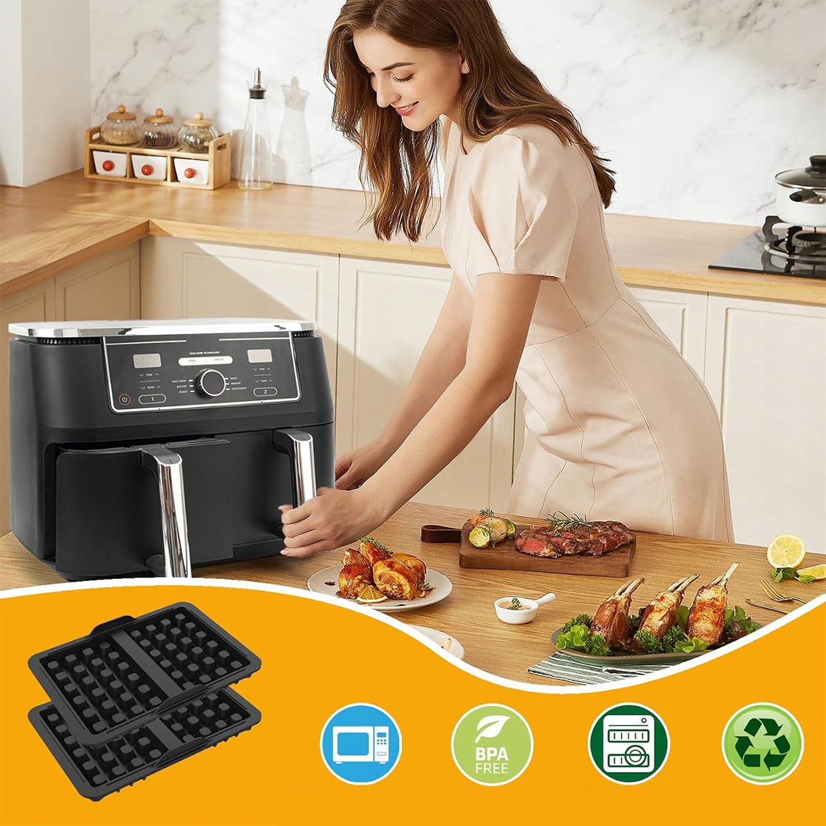 ⭐Ця силіконова підкладка для вафель розроблена спеціально для фритюрниць з гарячим повітрям, таких як Ninja AF400EU, а також підходить для всіх фритюрниць з гарячим повітрям більшої місткості. Він і довговічний, і універсальний. Ці силіконові лотки можна мити та використовувати багато разів, зменшуючи кількість відходів, роблячи їх доступним і екологічно чистим доповненням до вашої кухні.