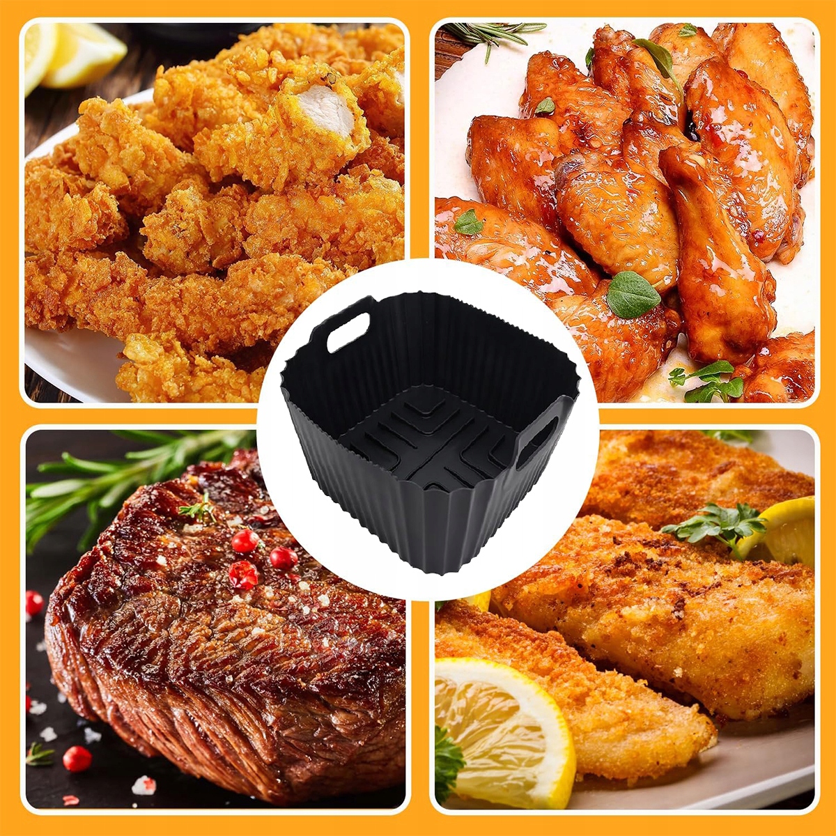 Дві багаторазові силіконові форми для аерофритюрниці полегшують утримання кошика в чистоті та прибирають його легко. Вони також захищають антипригарне покриття фритюрниці та подовжують термін її служби.