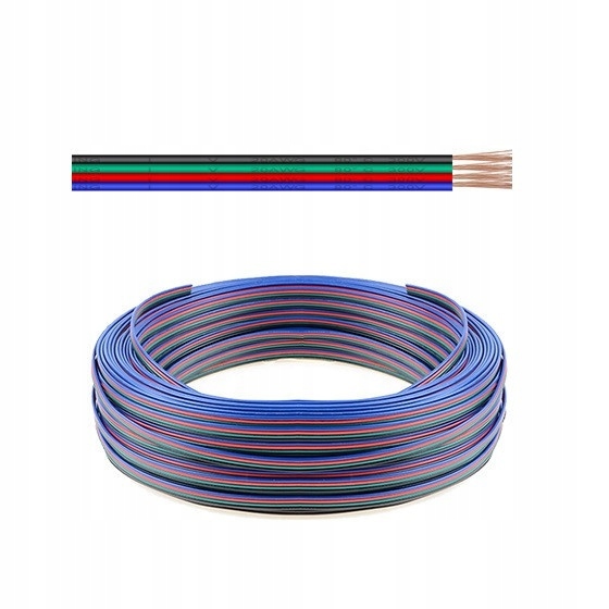 П’ять -велосипедний кабель для установки на основі світлодіодних смуг RGBW. Оптимально вибраний перехресний розріз кабелю дозволяє правильну установку освітлення RGBW, обмежуючи краплі напруги за рахунок використання невідповідних кабелів.