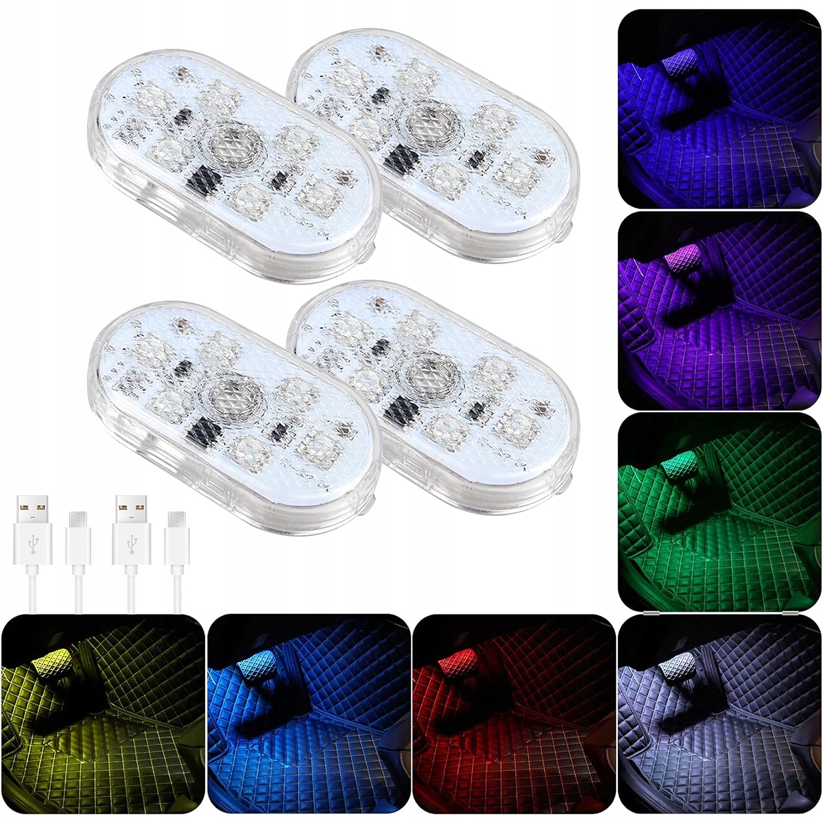Сенсорна світлодіодна світлодіодна лампа для освітлення салону автомобіля з можливістю заряджання через USB, 2 шт. RGB, різнокольорове навколишнє освітлення