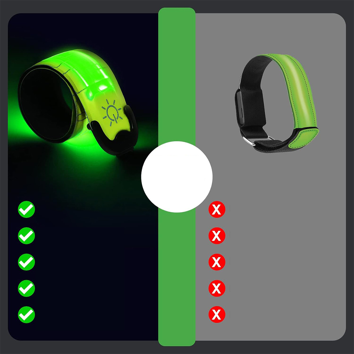 Світлодіодний браслет світить дуже яскраво вночі та створений для надвисокої видимості на 360 градусів у сутінках і під час нічних занять, забезпечуючи вашу безпеку.