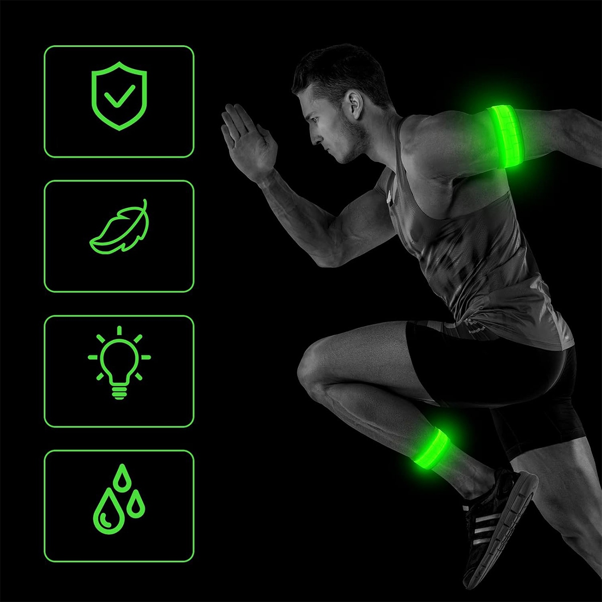 Хочете подбати про свою безпеку з настанням темряви? Завдяки світловідбиваючим стрічкам вас буде добре видно під час бігу, їзди на велосипеді чи ходьби. Водонепроникний дизайн і потужне світлодіодне світло забезпечують видимість навіть за несприятливих погодних умов. Легкий дизайн дозволяє одягнути його одним рухом!