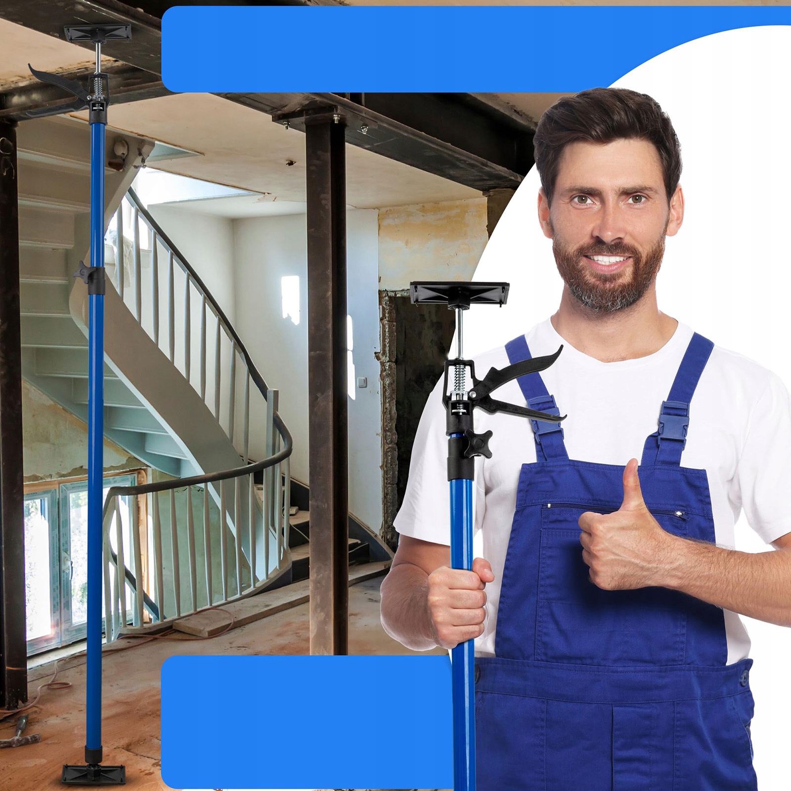 Телескопічна опора полегшує та прискорює складні роботи, такі як оздоблення, монтаж стелі, стін та опалубки.