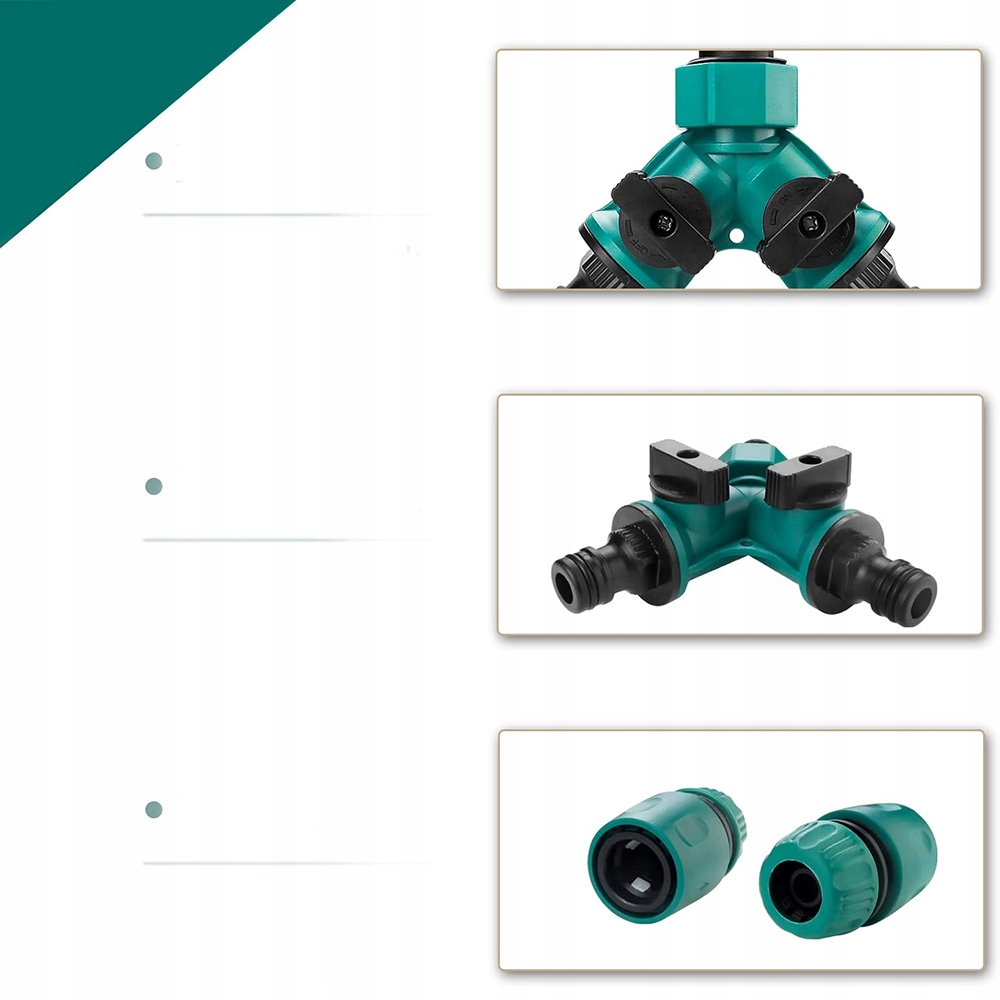 Розповсюджувач води y з двосторонніми з'єднаннями та 2 окремими клапанами Na-Do. Після використання сепаратора води ви можете легко перетворити 1 кран у 2 джерела води з високим потоком, а об'єм води в з'єднання може бути регульованим та індивідуально вимкненим, що полегшує життя в саду.