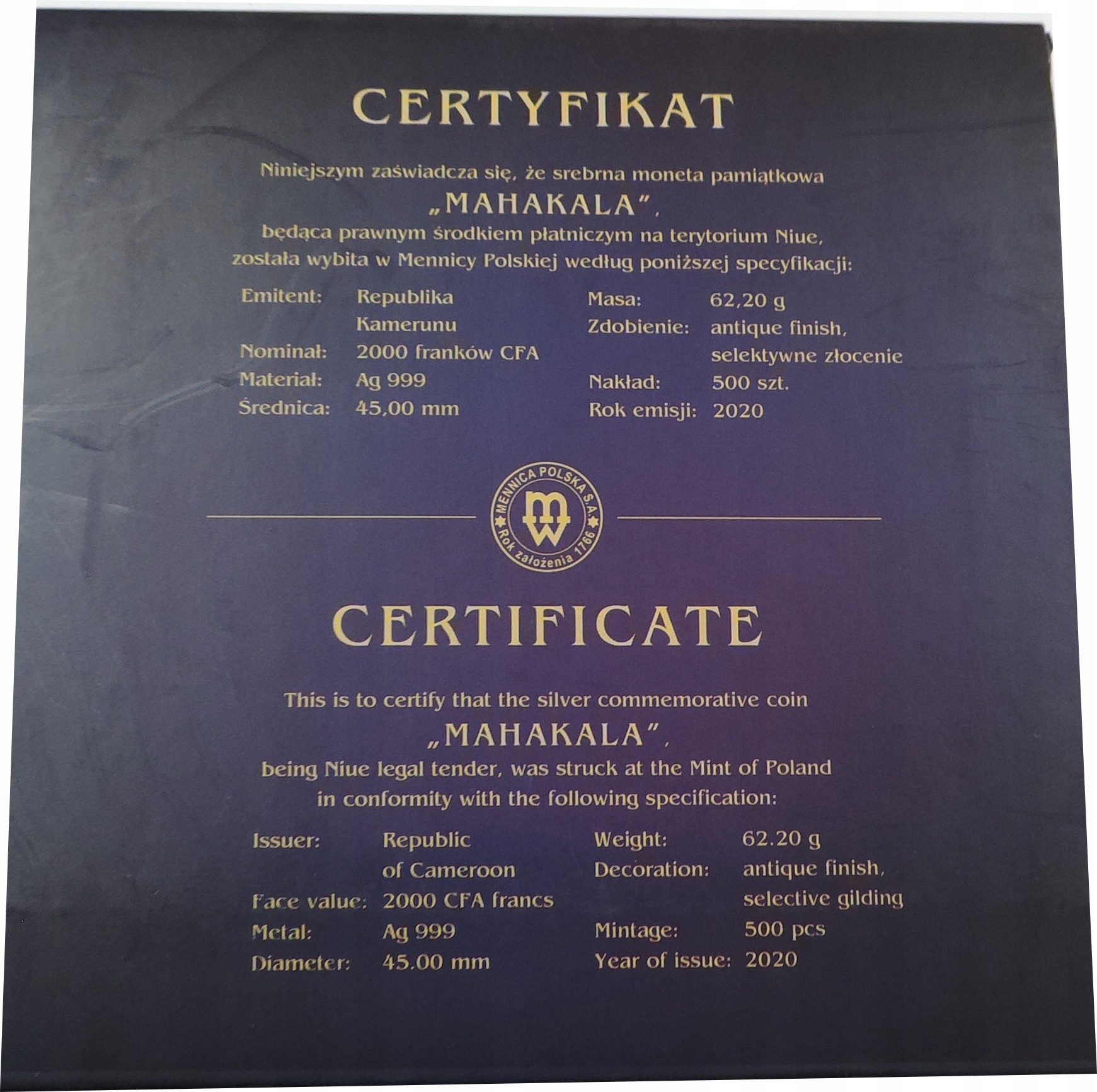 2 UNCJE Ag999 - 2000 FRANKÓW 2020 KAMERUN - MAHAKALA -MKR39