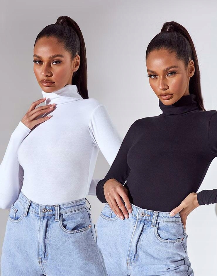 2 УПАКОВКИ БІЛОГО ЧОРНОГО PRETTYLITTLETHING 42 КЛАСИЧНОГО ГЛАДКОГО БОДИ ДЛЯ ГОЛЬФУ
