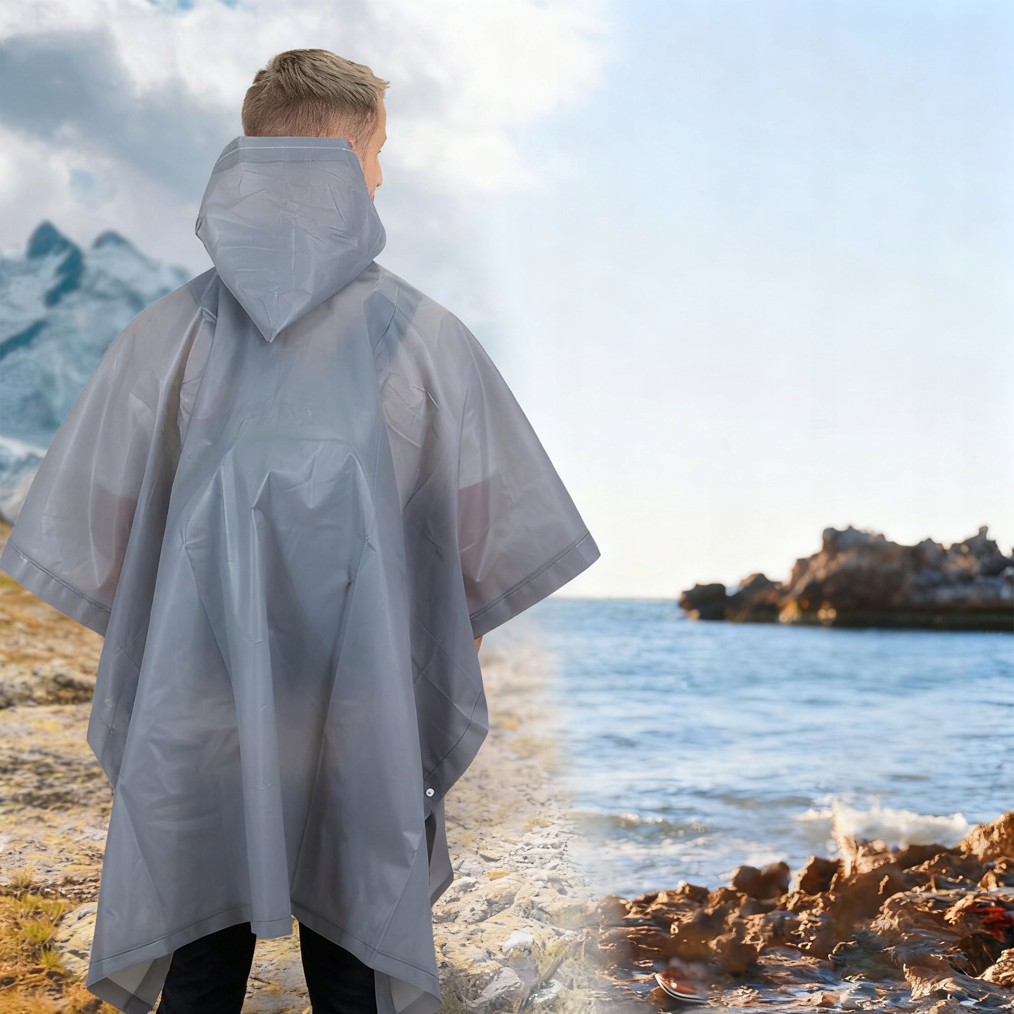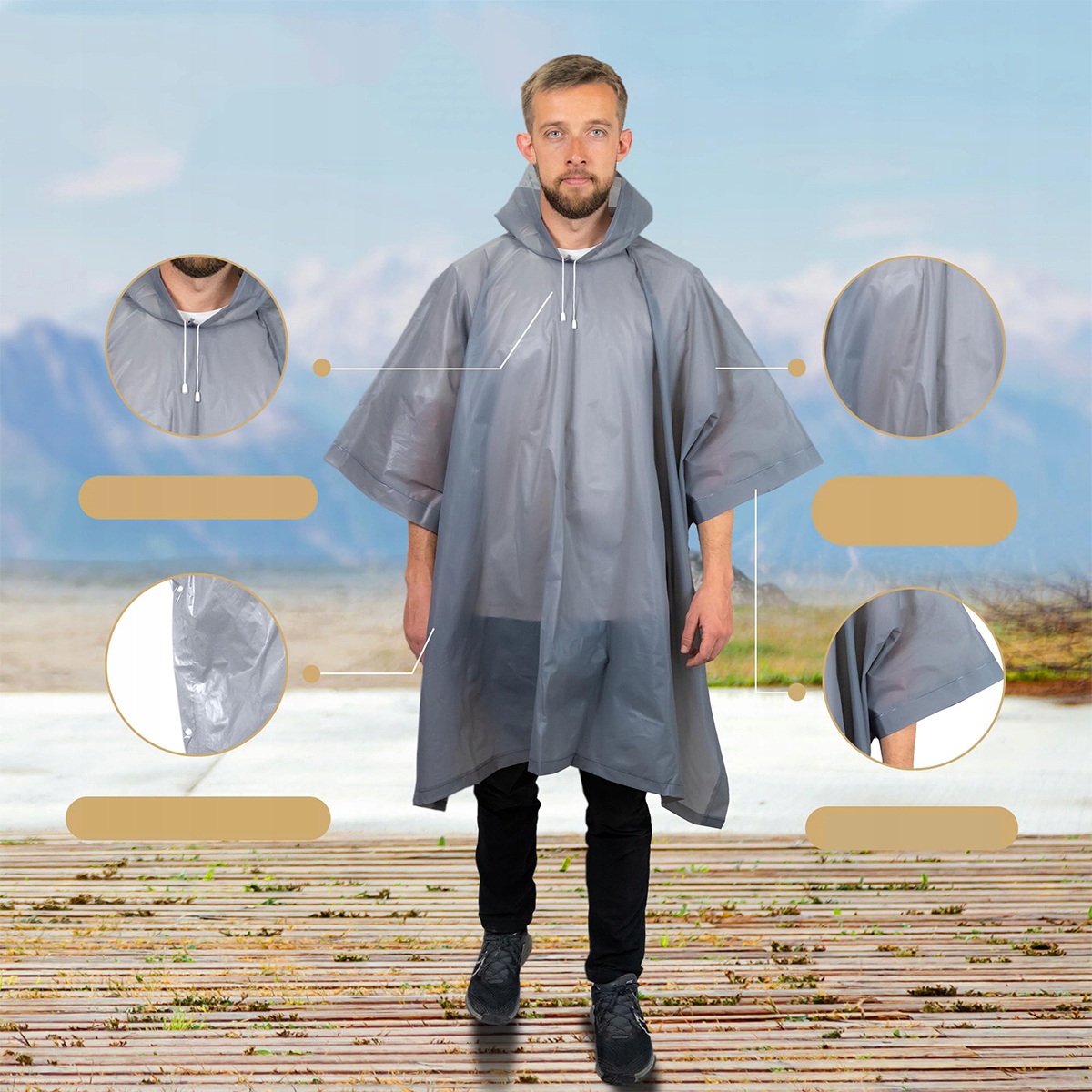 Цей сірий плащ-пончо — ідеальне поєднання функціональності та стилю. Завдяки універсальному дизайну він ідеально підходить для тих, хто шукає надійний захист від дощу. Ви можете легко скласти його та помістити в рюкзак або сумку, що робить його ідеальним вибором для будь-якої негоди.