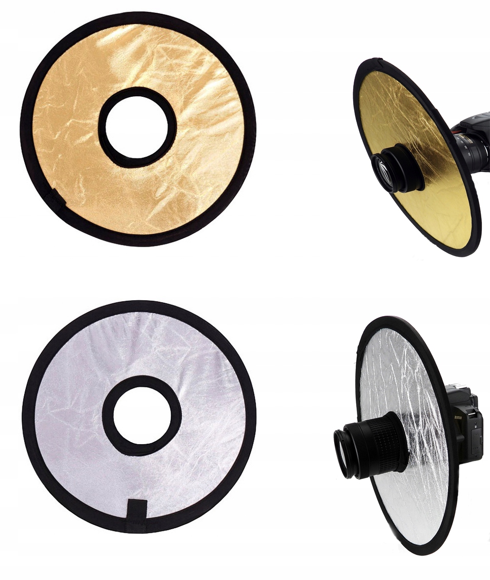 Набір 2 зручні складні об’єктиви. Вони ідеально підходять для професійної та аматорської зйомки. Вони дозволяють працювати з освітленням як на вулиці, так і в приміщенні (наприклад, як відбивач) без необхідності використання інших аксесуарів. Вони забезпечують чудову якість фото завдяки здатності відбивати світло та коригувати його колір!
