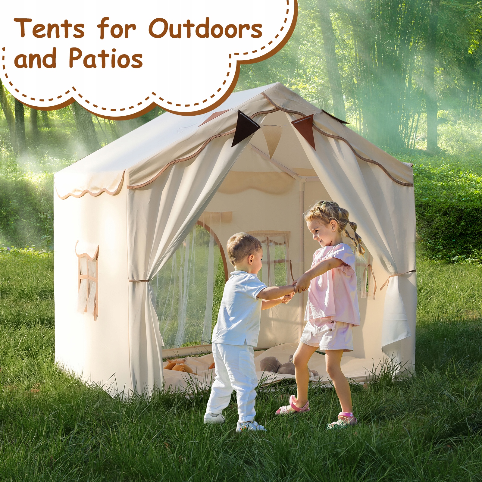Розміри 132 см (довжина) × 92 см (ширина) × 128 см (висота). Набагато більше, ніж типові намети для дітей! Ваша дитина може вільно грати, а інтер'єр навіть вмістить ваші улюблені іграшки, фаршировані тварини ... та собака! Ідеально підходить для взаємодії та розваг без кордонів.