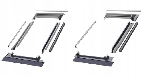Модульна комбінована система FAKRO типу В2/1 складається з двох модулів КХВ-1-АТ та КХВ-1-АТ, за допомогою яких можна створити щільне з’єднання вікон. Модуль є окремим фланцевим елементом із відповідним маркуванням, призначеним для відповідного місця у з’єднанні.