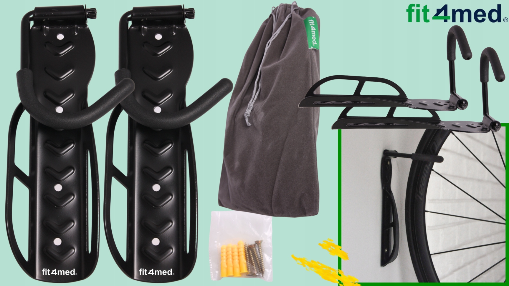 2X ВІШАЛКА ДЛЯ ВЕЛОСИПЕДІВ НАСТІННИЙ ТРИМАЧ ДЛЯ ВЕЛОСИПЕДІВ СУЦІЛЬНИЙ НАСТІННИЙ ГАЧОК ЗІ ШТИРКАМИ