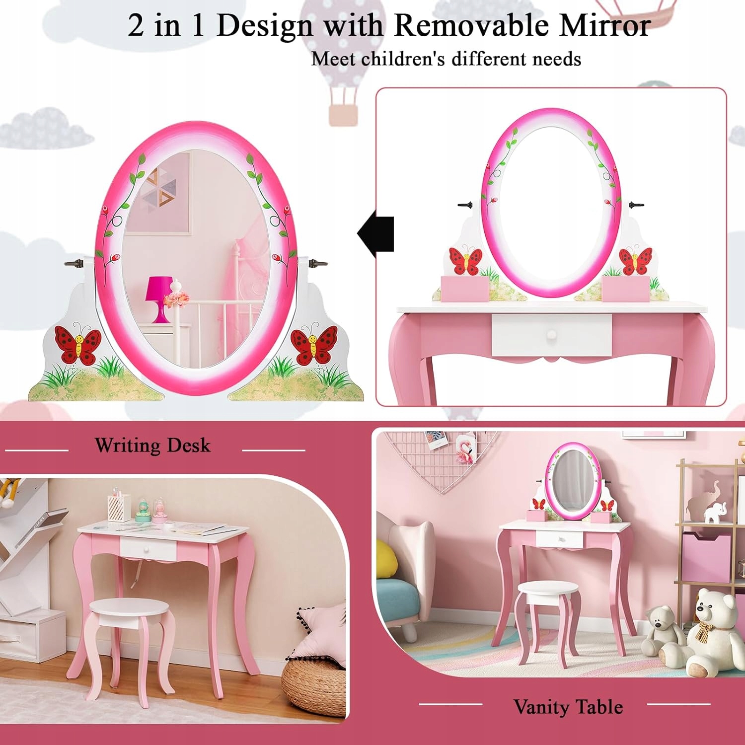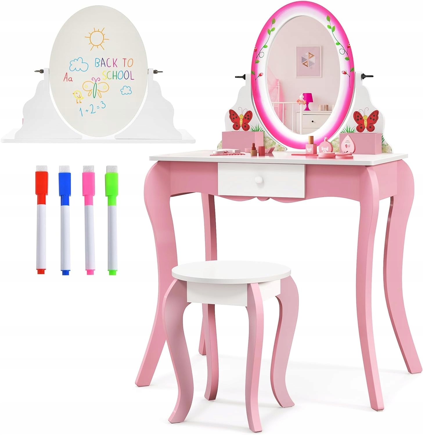 2 w 1 toaletka dziecięca z taboretem, ze zdejmowanym i obrotowym połyskiem