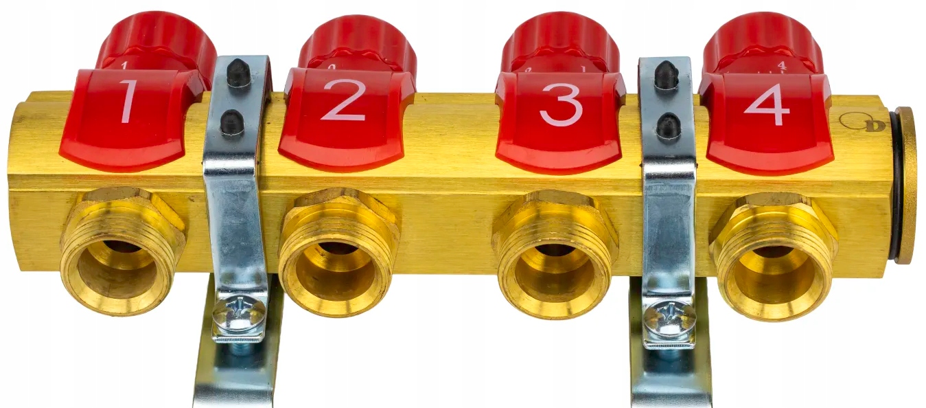 КОМПЛЕКТ РОЗПОДІЛЬНИК 4-Х КОНТУРНИЙ З ВЕНТИЛЯМИ ДЛЯ РАДІАТОРІВ ВОДЯНОГО ОПАЛЕННЯ 1*1/2.-4 МІЦНА СУЦІЛЬНА ЛАТУНЬ DIAMOND G-ROZ-006.1*1/2.-4