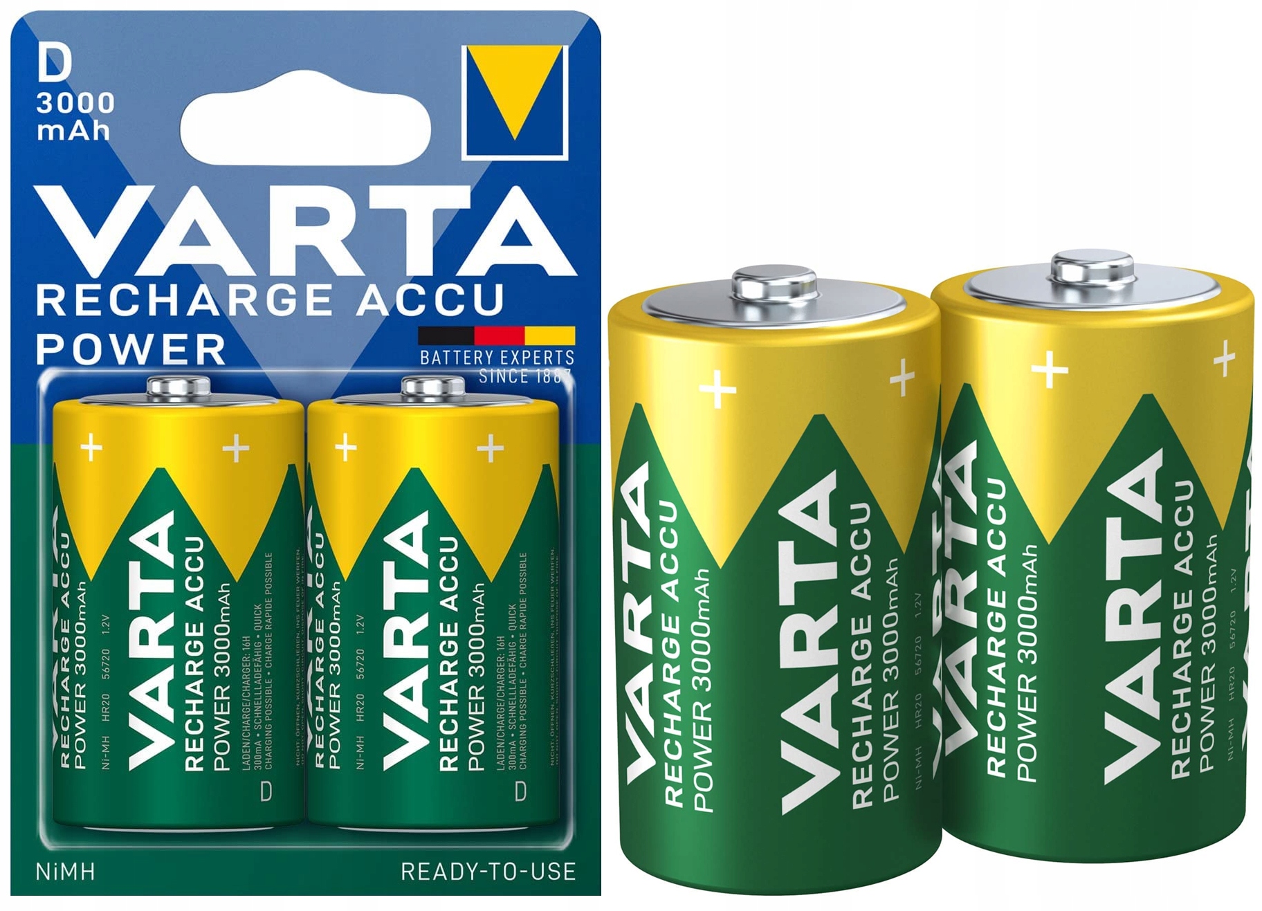 Інноваційні акумулятори Varta Ready2Use R20/D (модель 56720), ємність - 3000mAh.