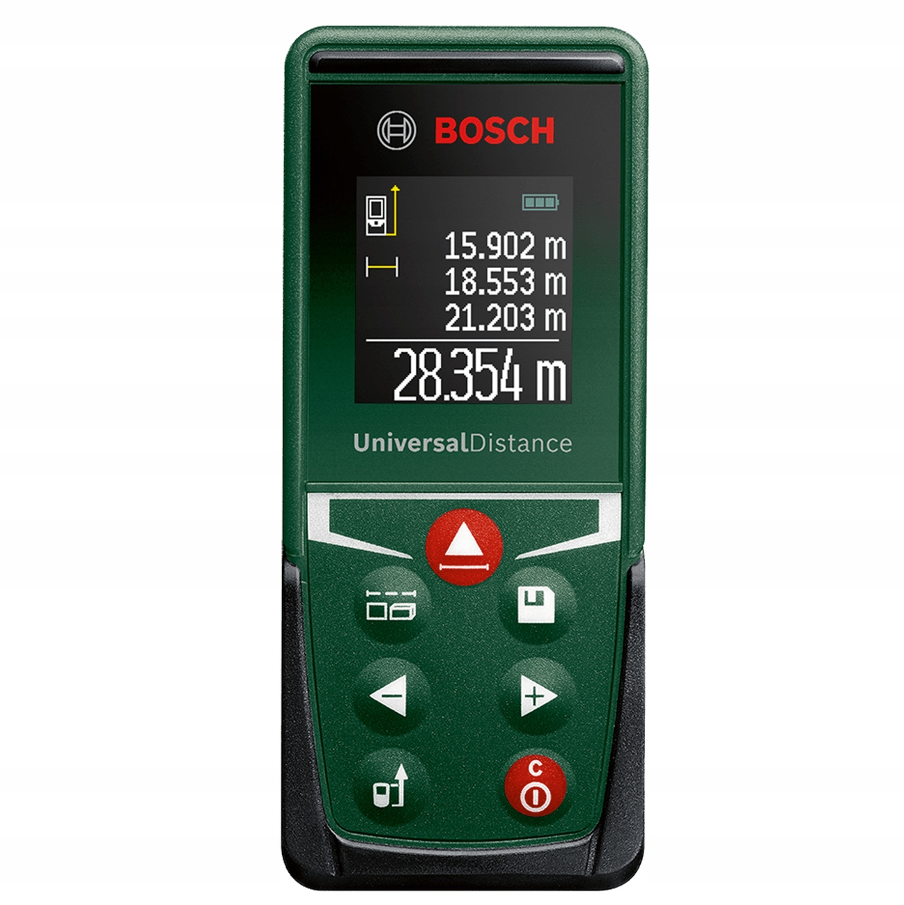 - Ви можете вибрати: довжину, поверхню, об'єм або безперервне вимірювання та можливість зберегти 10 результатів вимірювання в пам'яті.