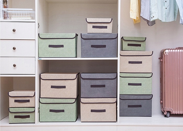 2 x Boxes Set Складана переносна коробка для зберігання бежевого кольору