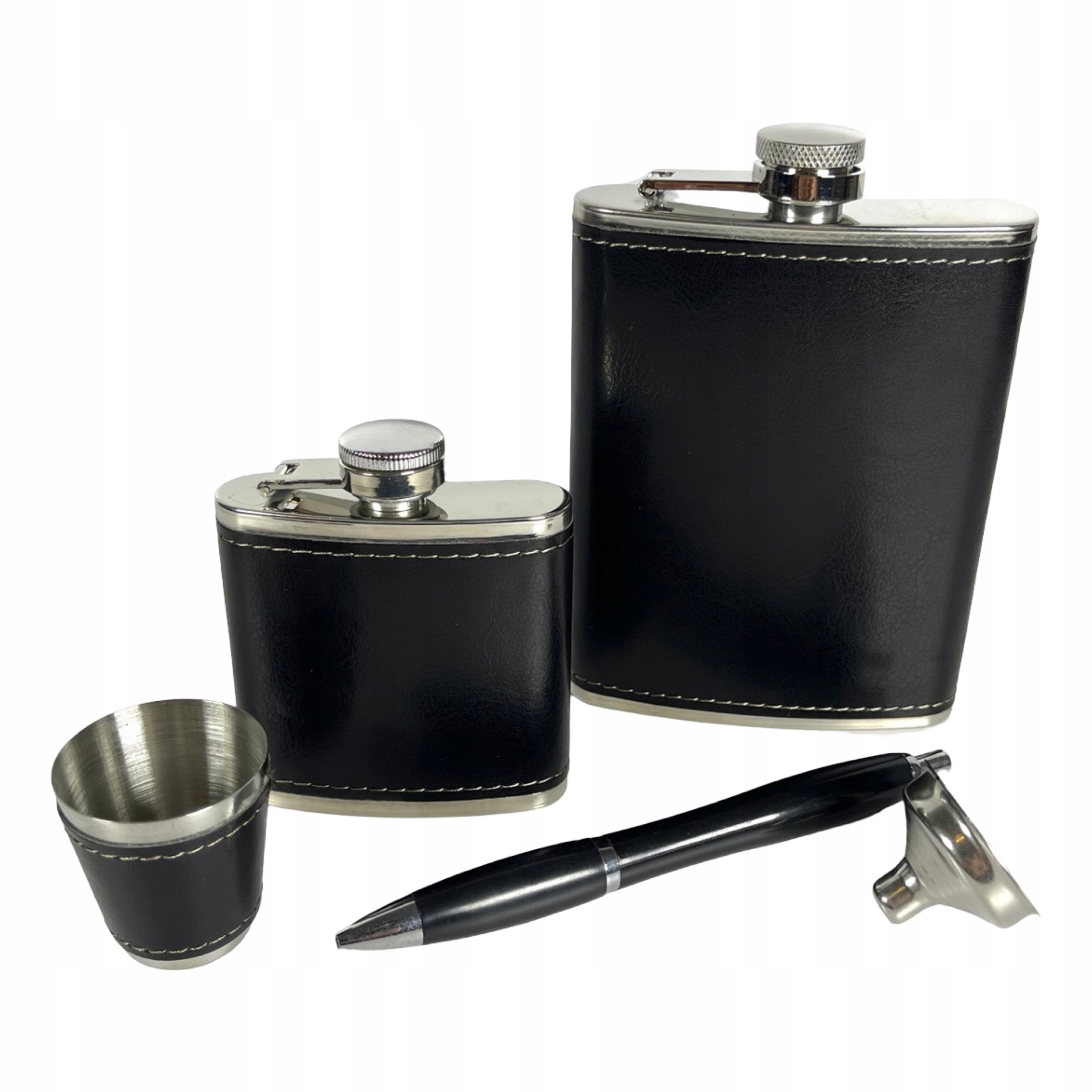 - Практичні аксесуари: воронка дозволяє легко наповнювати стегнові фляги, а стильна ручка завжди під рукою під рукою.