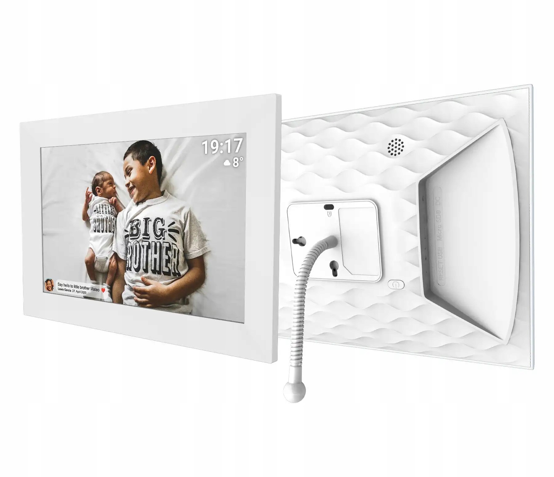 Вбудована пам'ять 16 ГБ дозволяє зберігати тисячі фотографій, а інтуїтивне меню полегшує перегляд та персоналізацію налаштувань. Функція розкладу дозволяє регулювати вміст вмісту до ваших потреб, а автоматичне регулювання яскравості робить рамку ідеальною у всіх умовах освітлення. Білий корпус із сучасним, мінімалістичним дизайном вписується в будь -який інтер'єр, що робить кадр не лише практичним пристроєм, але й стильним декоративним елементом. Рамка Denver PFF-1026W-це ідеальний вибір для всіх, хто хоче легко показати свої улюблені моменти або подарувати унікальний подарунок коханій людині.
