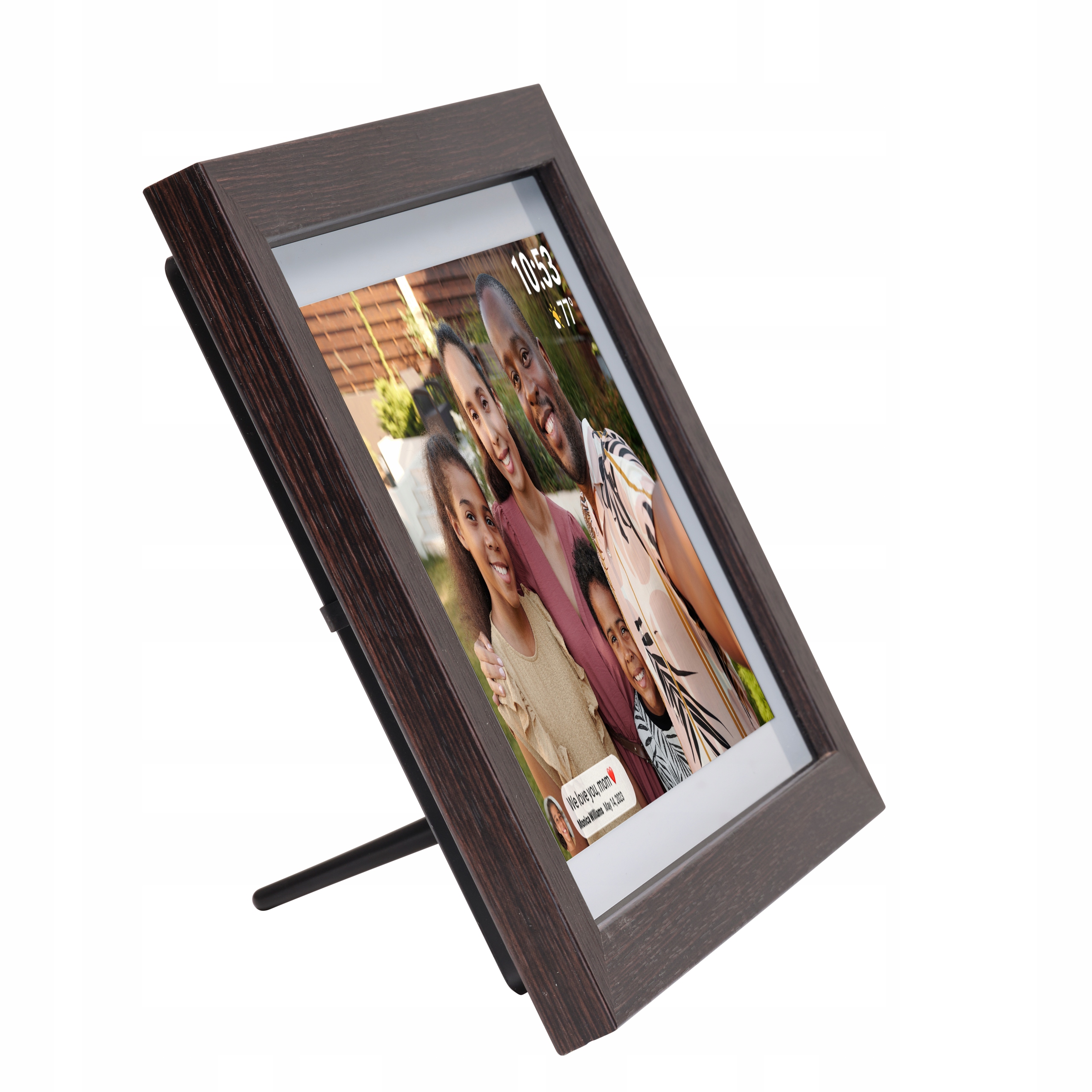 Завдяки технології IPS та сенсорний екран фотографії відображаються у високій якості . Ціле доповнюється елегантною, дубовою рамкою .