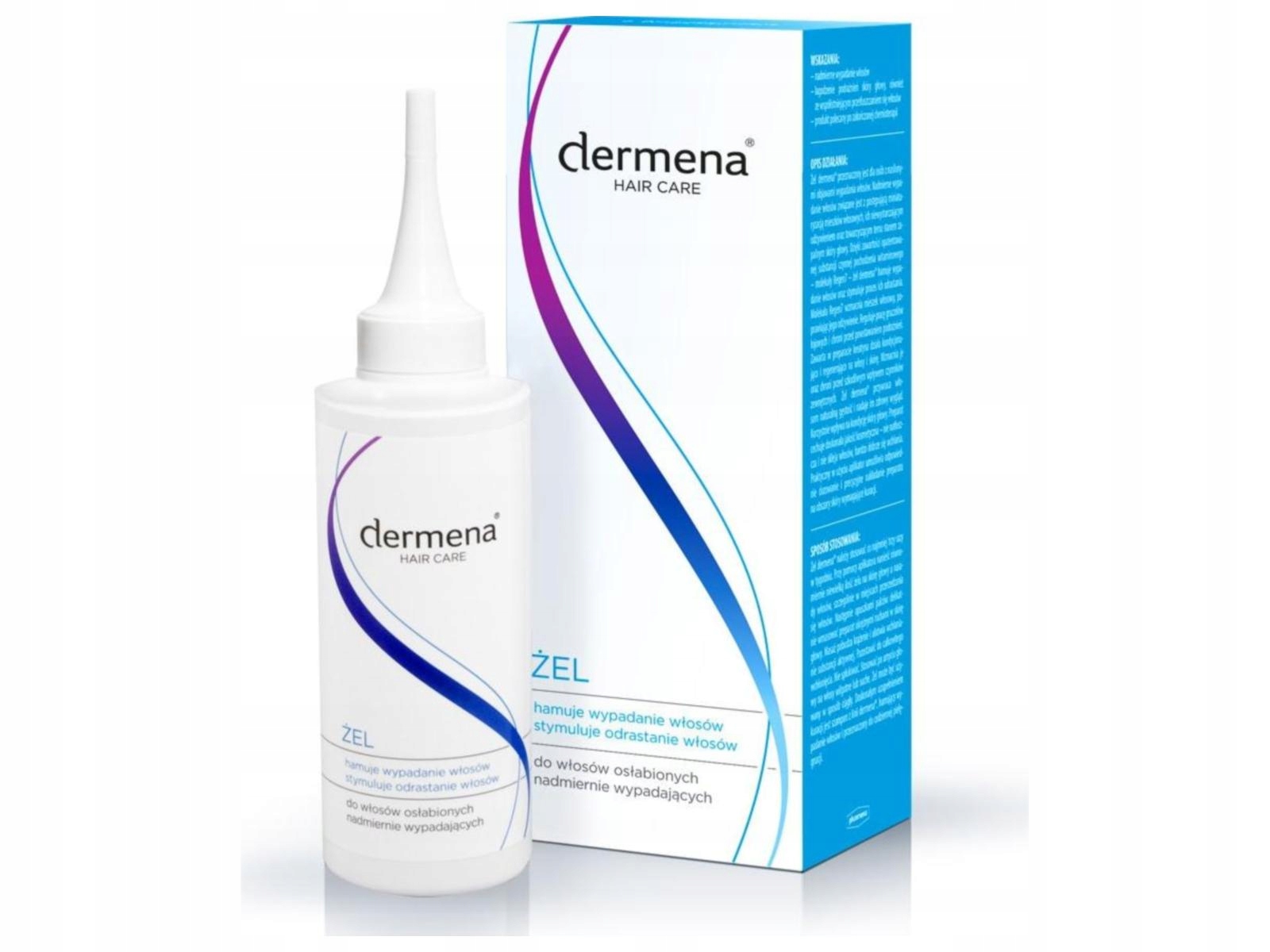 Ефект, пов’язаний із випаданням волосся, спостерігається на 3 -му тижні регулярного використання гелю Dermena®. Гель Dermena® позитивно впливає на стан шкіри та зміцнення волосся. Шестимісячні тести на застосування гелю Dermena® проводили в незалежній дослідницькій лабораторії.