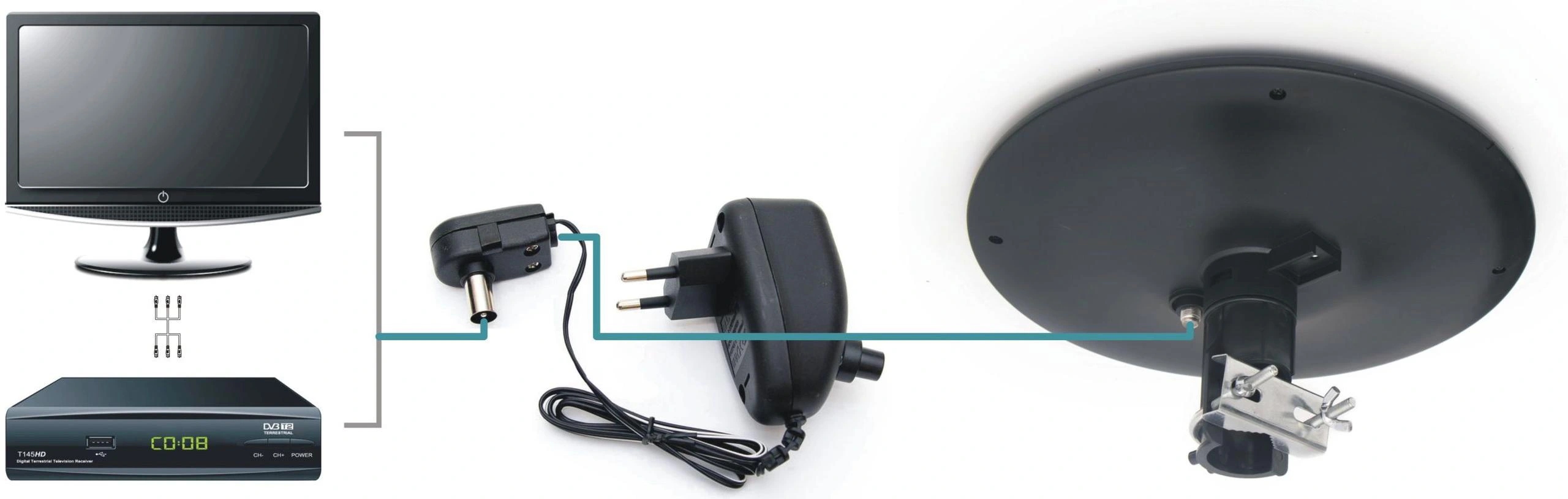 Сигнал, який отримує антену, сумісний з телевізором HD (Full HD), а підсилювач (з високим зміцненням) забезпечує низькі перешкоди.