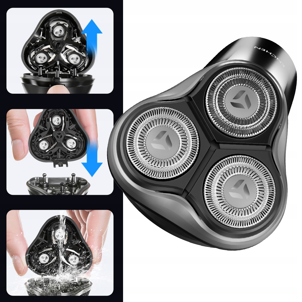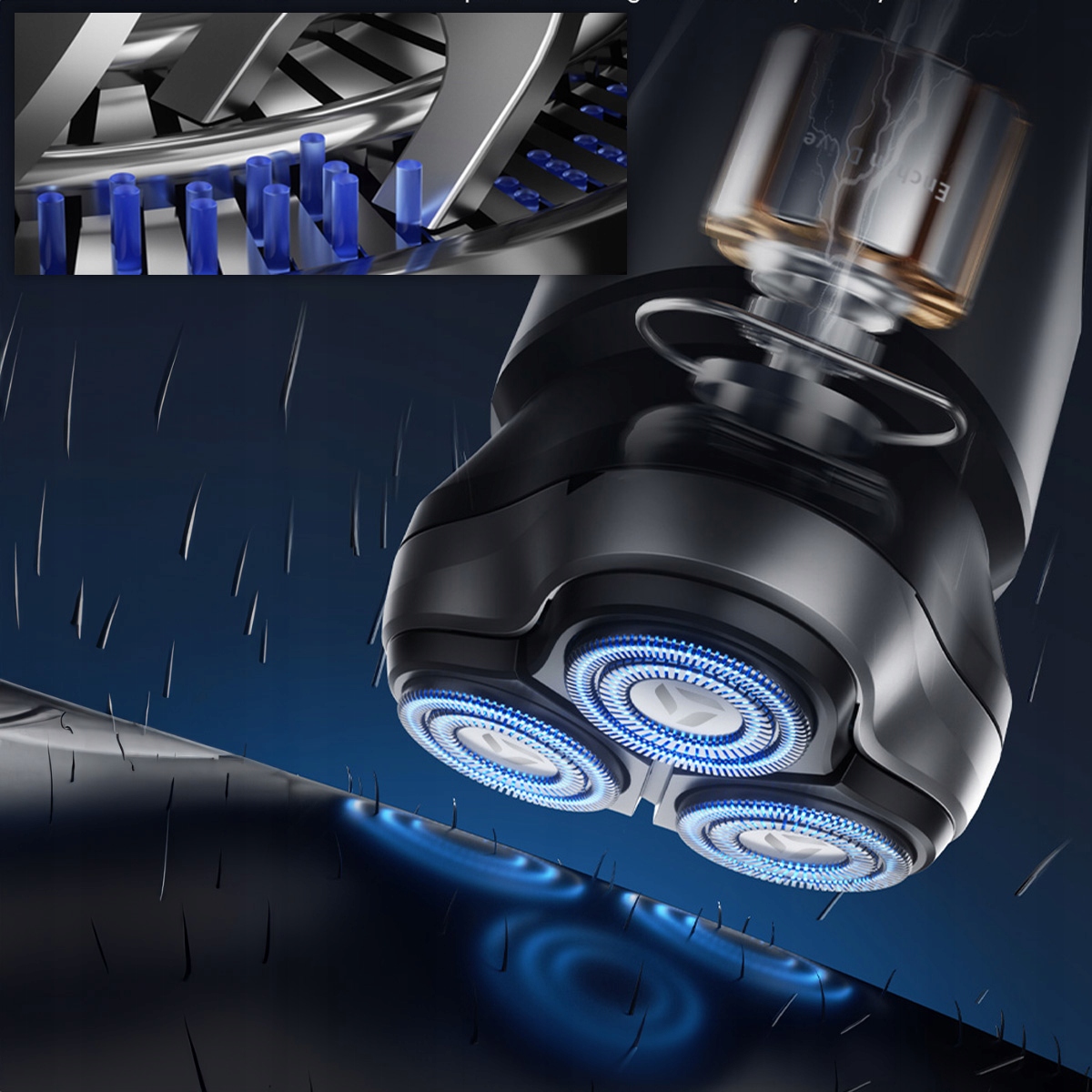 Незалежно плаваючі ріжучі головки, повністю гнучкі голови обертаються на 360, ідеально адаптуючись до кривих та овалу обличчя та шиї, гарантуючи не лише точне гоління, але й неперевершене відчуття комфорту.