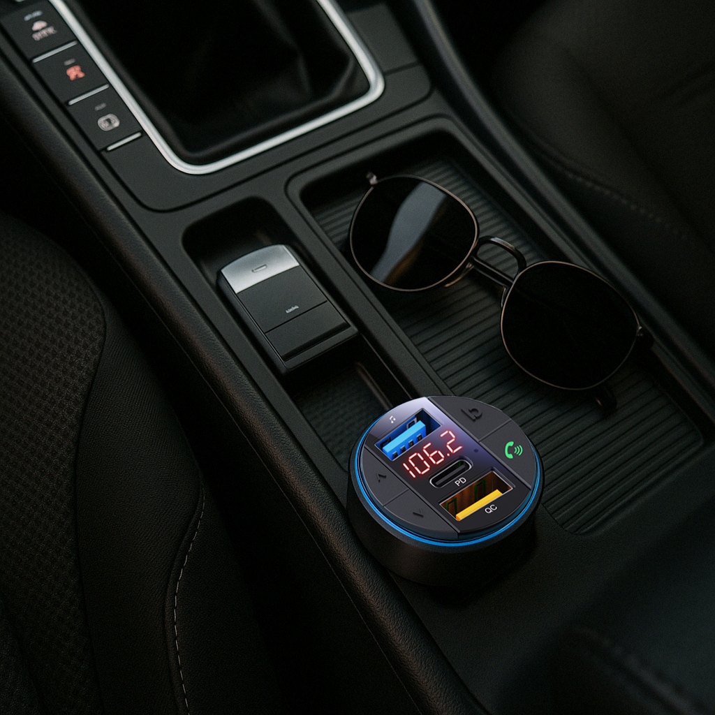 2 x FM-передавач Bluetooth BT USB TYP-C QC 3.0 + PD 30 Вт Бас-світлодіодний зарядний пристрій