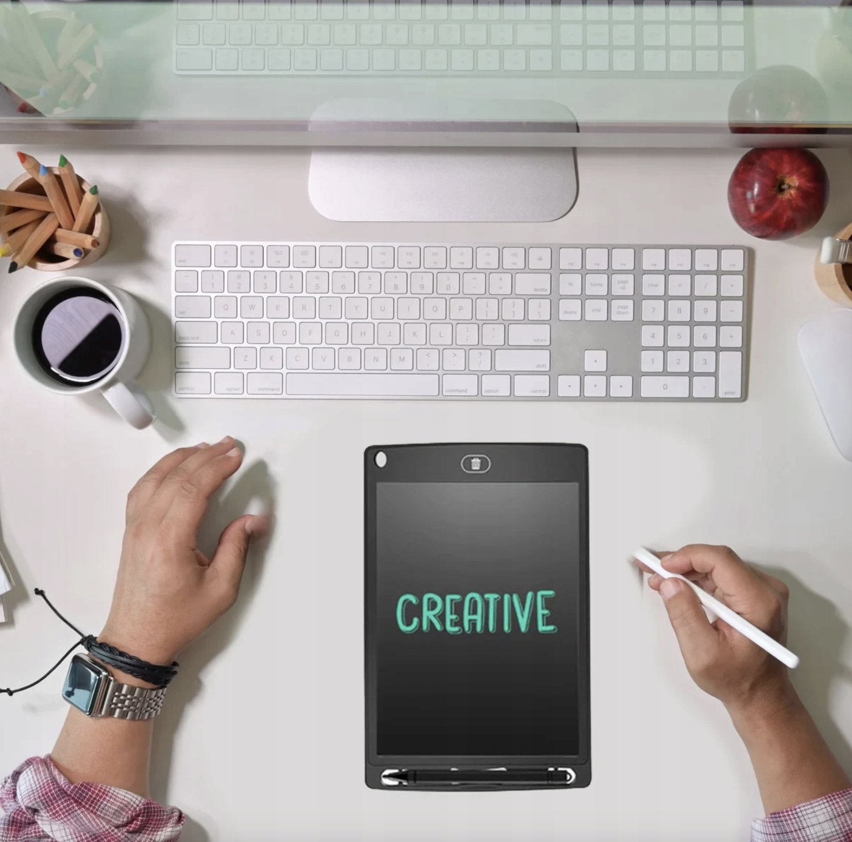 Планшет ідеально підходить для навчання малюванню, письму або рахунку. Це зручно для дорослих, що дозволяє їм записувати нотатки, створювати, наприклад, списки покупок.