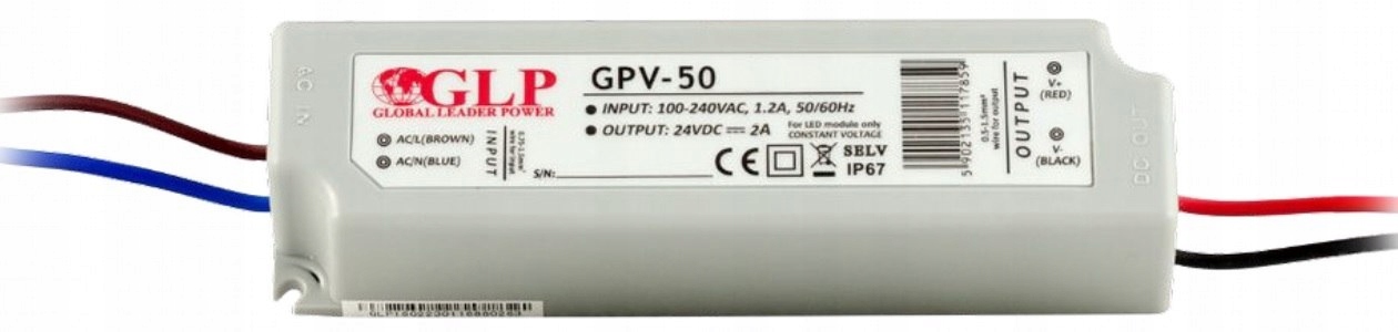 Герметичний блок живлення GPV-50-24 можна використовувати навіть у найвибагливіших світлодіодних установках вдома, в меблевій чи рекламній індустрії. Він також використовується для живлення інших пристроїв, які працюють від напруги 24 В постійного струму.