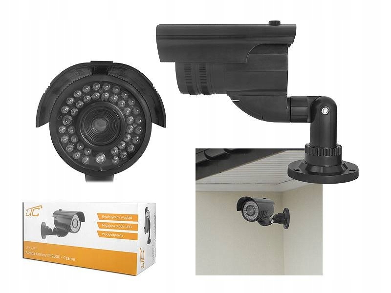 Професійний фіктив камери, який неможливо відрізнити від реальної камери моніторингу. Дамект оснащений червоним світлодіодом "запису", імітація Ір -діодів та дуже реалістичний смітник об'єктива. Реалізм цього пристрою викликає враження контакту з професійним обладнанням для моніторингу.