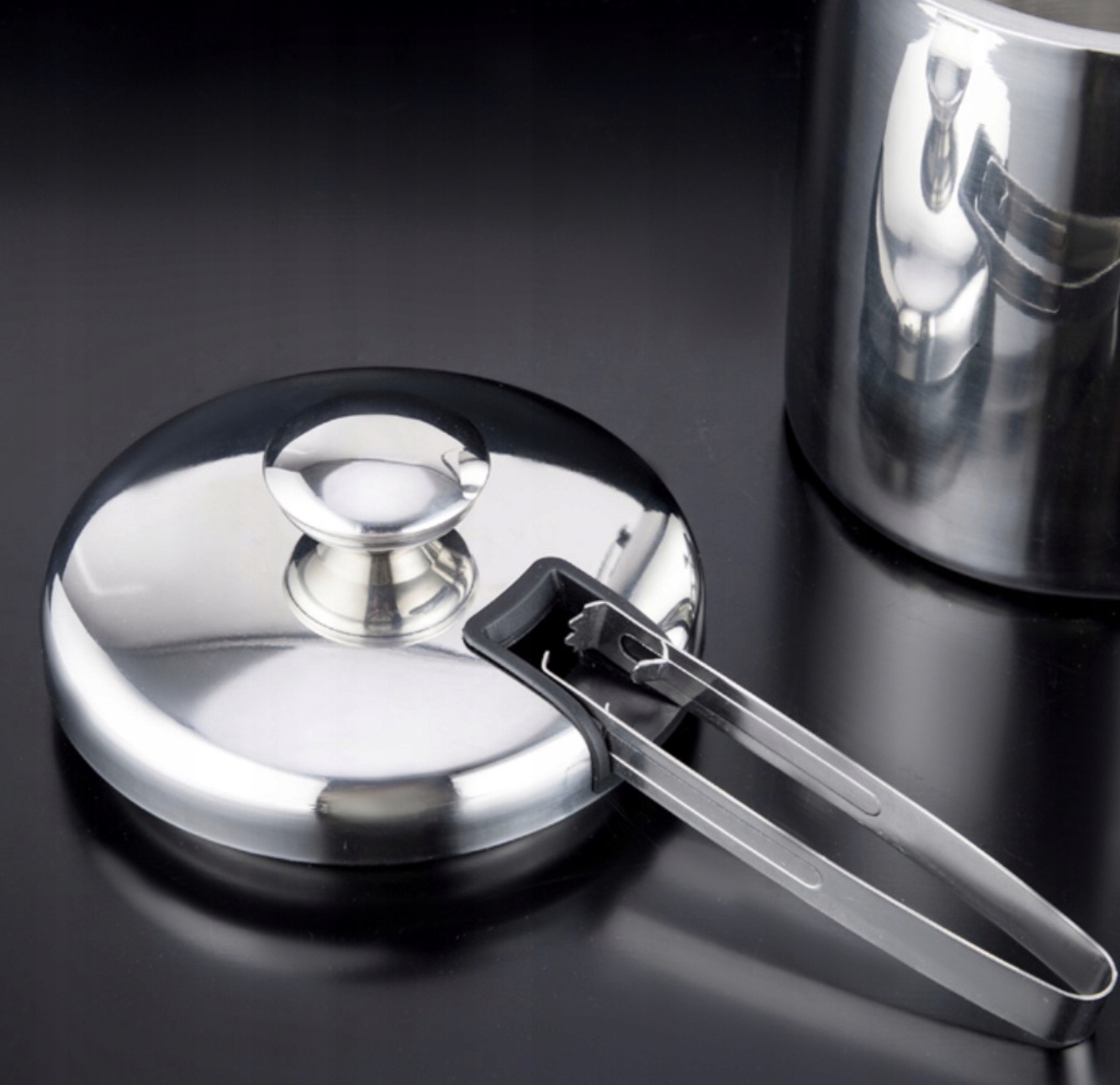 - Подвійна стіна утримує холод - набір виготовлений з міцної нержавіючої сталі. Кришка та відро мають подвійні стінки, які довше тримають лід у замерзлому стані. 4 Ручка має ергономічну форму і зручно утримувати. 4 Важливим доповненням у наборі є ситечко, який тримає лід над шаром води, що утворюється внаслідок її повільного плавлення. Набір також включає ложку баренда та крижані плоскогубці.