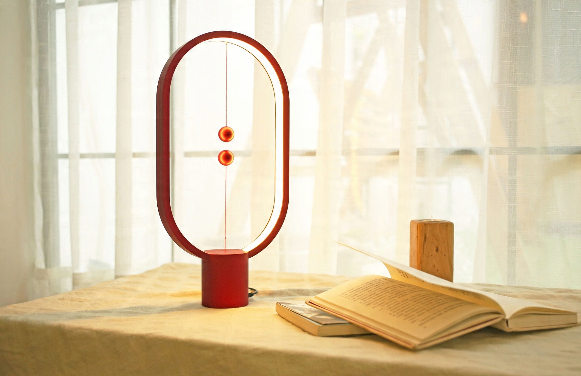 лампа Heng Balance -це серія одних -a -ойських настільних ламп: Хоча більшість ламп мають регулярний перемикач, лампа балансу Heng контролюється двома кульками.