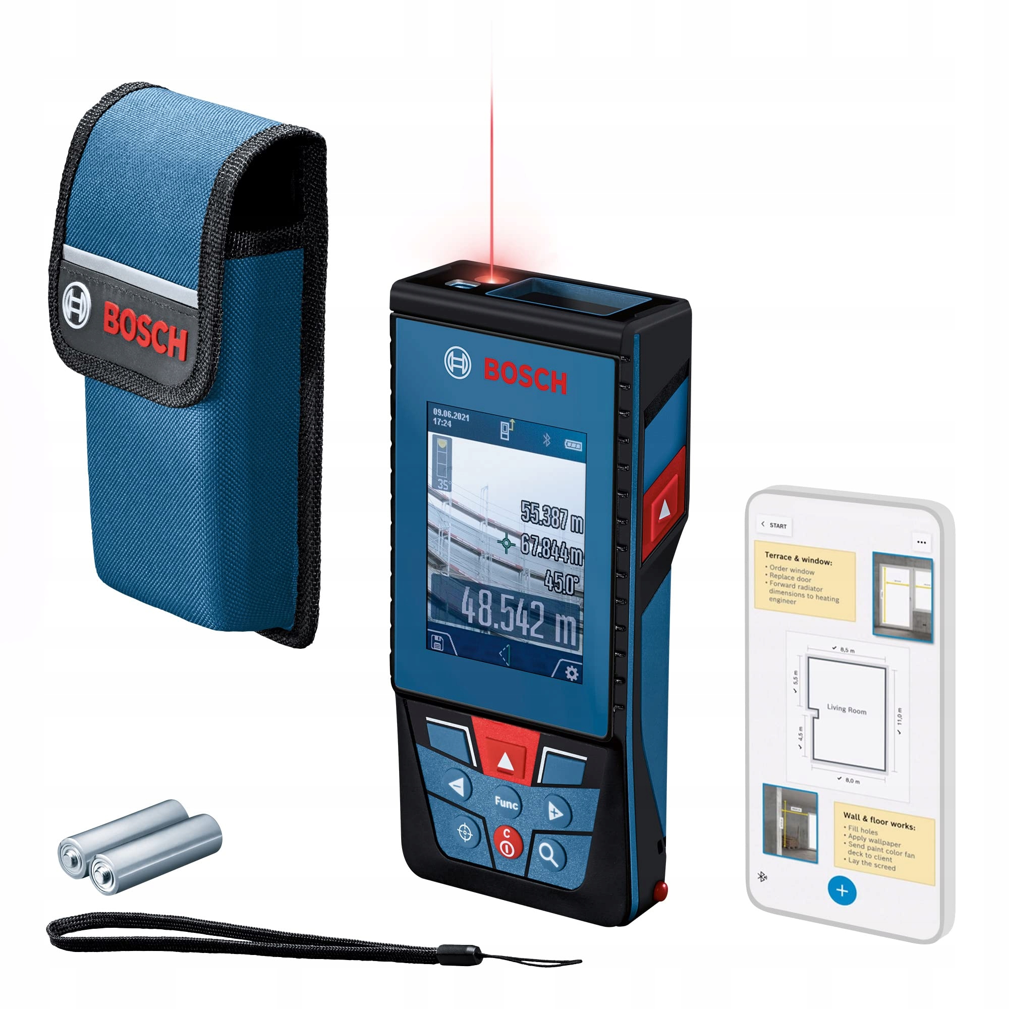 Bosch GLM 100-25 C Professional, Laser Rangefinder (вбудована камера, діапазон: до 100 м, міцність, IP54, ± 1,5 мм*, 3 батареї AA, діапазон рук, обкладинка), синій