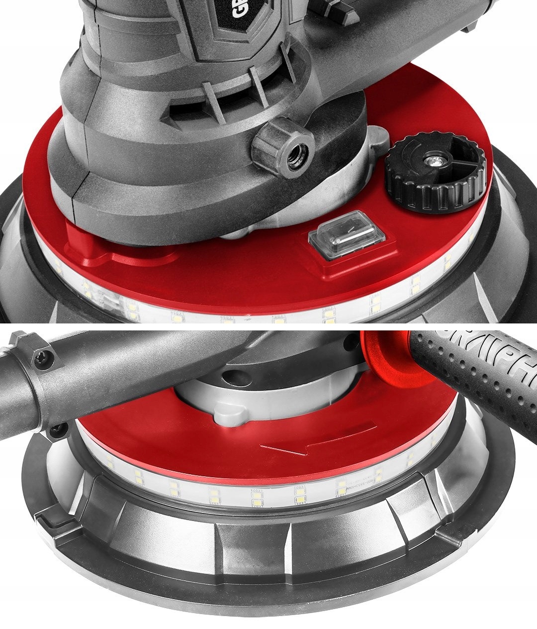 - Шліфувальна машина GRAPHITE 900 Вт, 180 мм, LED 59G263 — шліфувальна машина потужністю 900 Вт зі світлодіодним підсвічуванням, призначена для обробки штукатурних поверхонь.