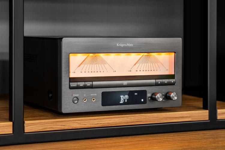 km1995 не лише вражає високу якість звуку, але й витонченість, яка гарантує бездоганну естетику в будь -якому інтер'єрі. Унікальний персонаж у ретро -стилі також додається аналогом лічильника аудіорівень, розміщених на фронті.
