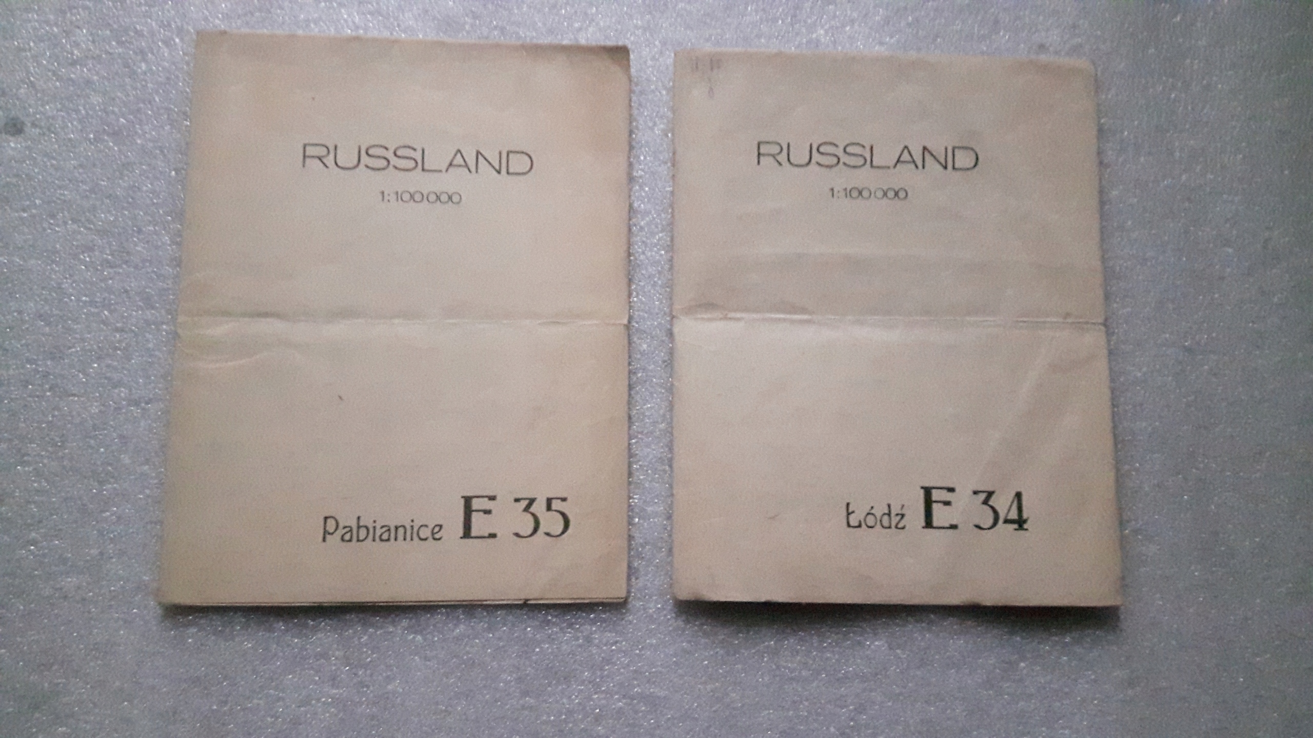 2 німецькі карти, описані як «західна Росія», позначені квадратами E 34 та E 35. Карта E 34 показує Лодзь та її околиці, опублікована в 1907 році ----- Карта E 35 показує Паб'яніце та її околиці, опублікована в 1915 році. Обидва формати 42x36 см, масштаб 1: 100 000, стан обох: хороший + (гарний), ціна за 2. Я так не надсилати післяплатою.
