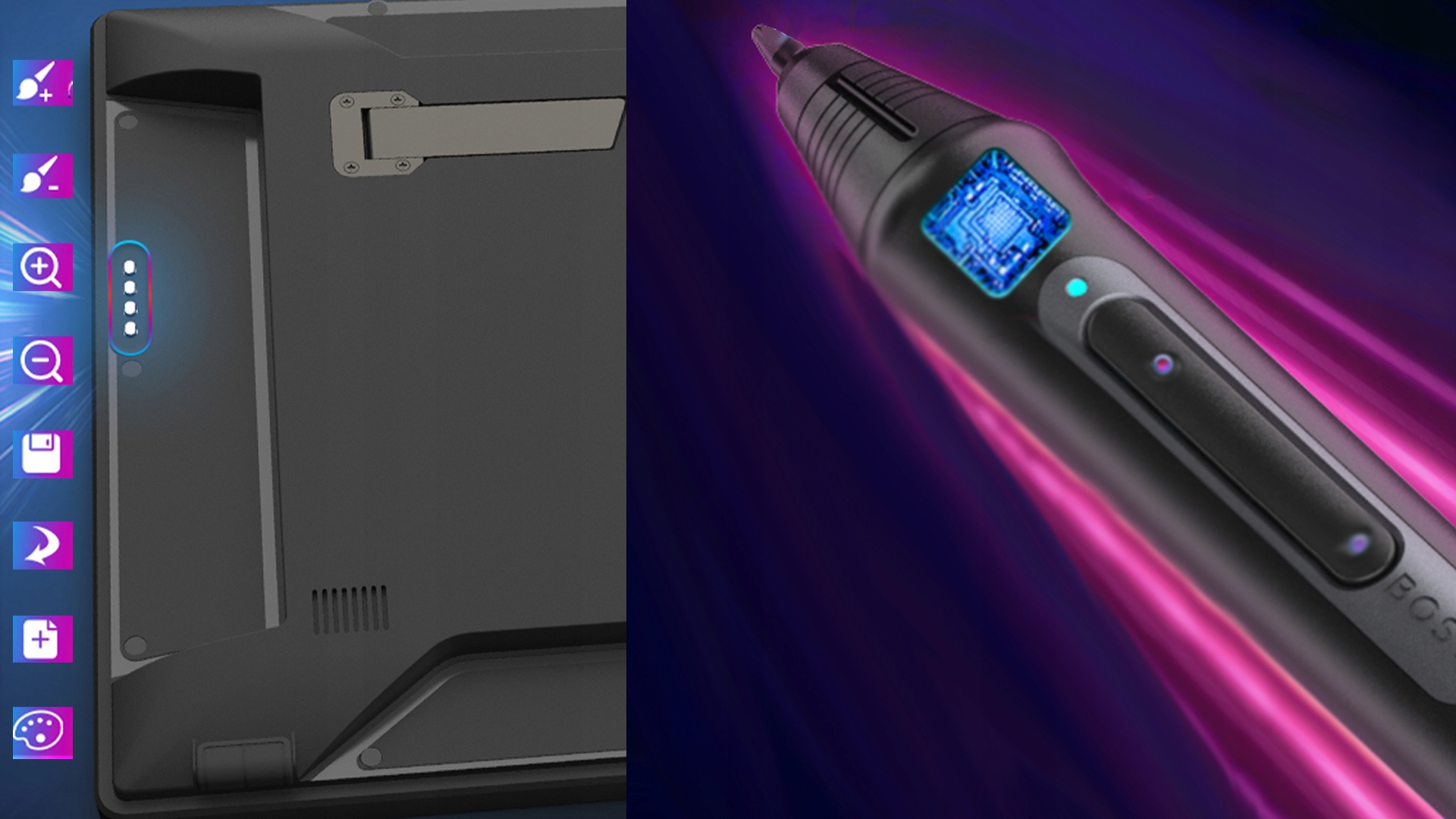 - Ніякий простір означає, що перо контактує безпосередньо з поверхнею екрана, що покращує точність та відчуття природності під час роботи на планшеті.
