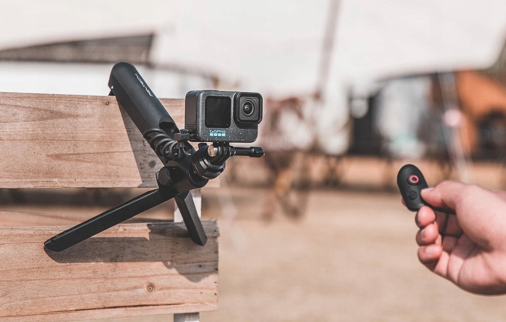 штатив оснащений пультом дистанційного керування. Магнітне кріплення дозволяє легко зберігати та швидкий доступ до пульта дистанційного керування - просто прикріпіть його до штатива, щоб завжди мати його під рукою. Це дозволяє зручно контролювати основні функції, такі як фотографування, запису відеозаписів або зміна режиму роботи. Його діапазон становить 10 м, а індикатор світла повідомить вас про стан роботи продукту.