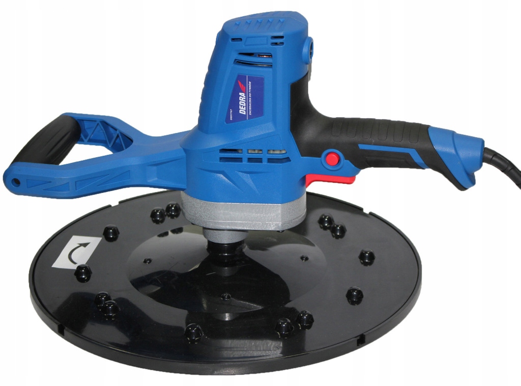 DED7767 Штукатурка Трюнкер - це пристрій, який полегшить і прискорює роботу, і дозволяє отримати набагато більшу якість обробки, ніж використання традиційних ручних інструментів. 4 Довіра полегшує роботу та прискорює роботу та дозволяє отримати набагато більшу якість обробки, ніж використання традиційних інструментів для рук. Основним завданням пристрою є розмиття та гладкі пластинки з цементу вапняк і розірвати старі покриття (фарби, шпалери або верхній шар штукатурки). Основне використання пристрою-це розмивання та згладжування пластирів цементу вапняк та розривання старих покриттів, таких як фарба, шпалери або верх штукатурки. Завдяки щиту діаметром 390 мм кріплення забезпечує швидку обробку великої поверхні. Блокування комутатора дозволяє безперервну роботу, а суцільна трійка коробки передач гарантує міцність пристрою. 5 м дріт та зручний гумові ручки надають ергономічну та безкоштовну роботу.