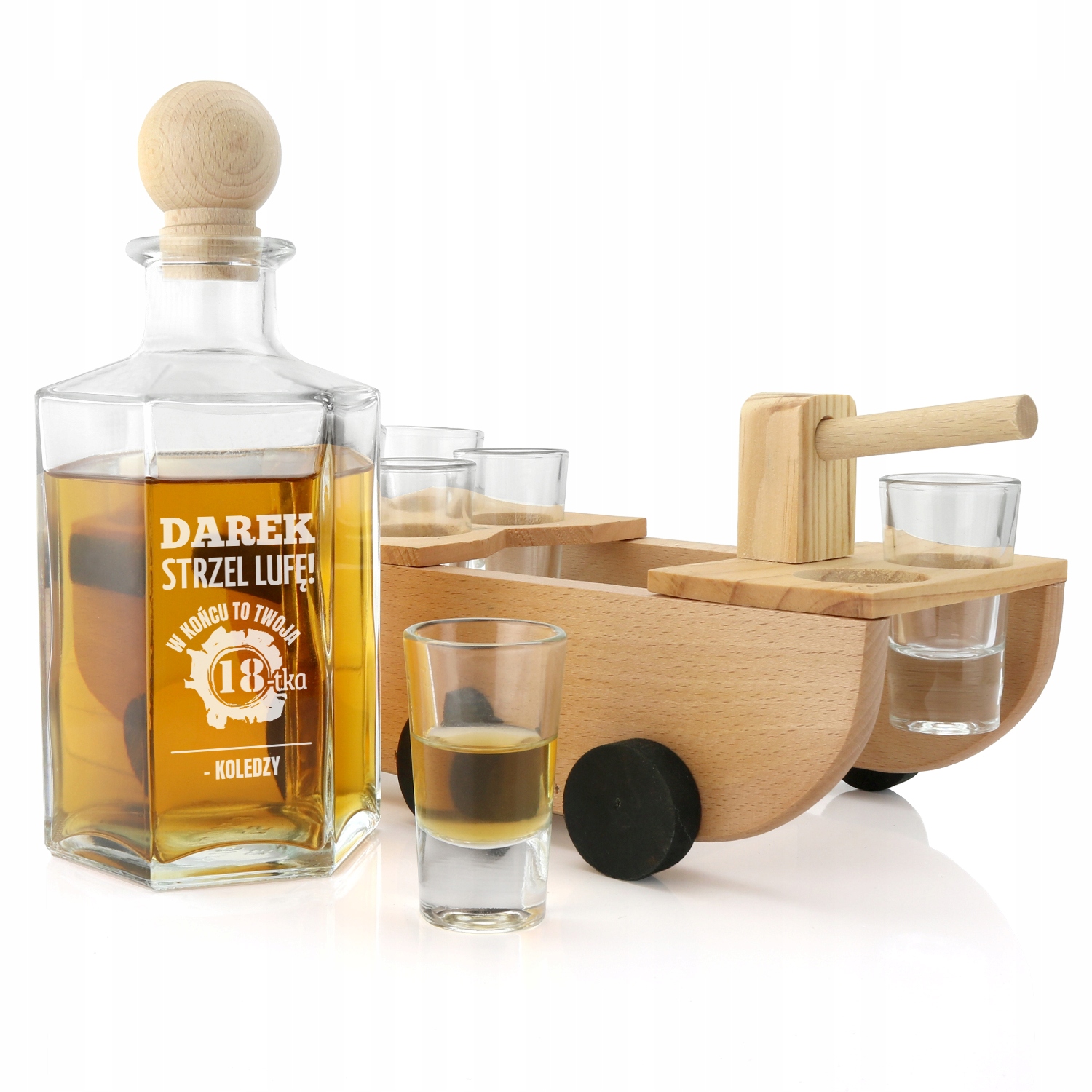 Ми представляємо унікальну пропозицію щодо подарунка для іменинника, , який любить стріляти в бочку! Скло КАРАФ + окуляри на дерев’яній основі у формі резервуара. Скляні елементи виготовлені з високоякісної скла та деревної основи. Цей тип подарунок , безумовно, вразить усіх. Параметри
