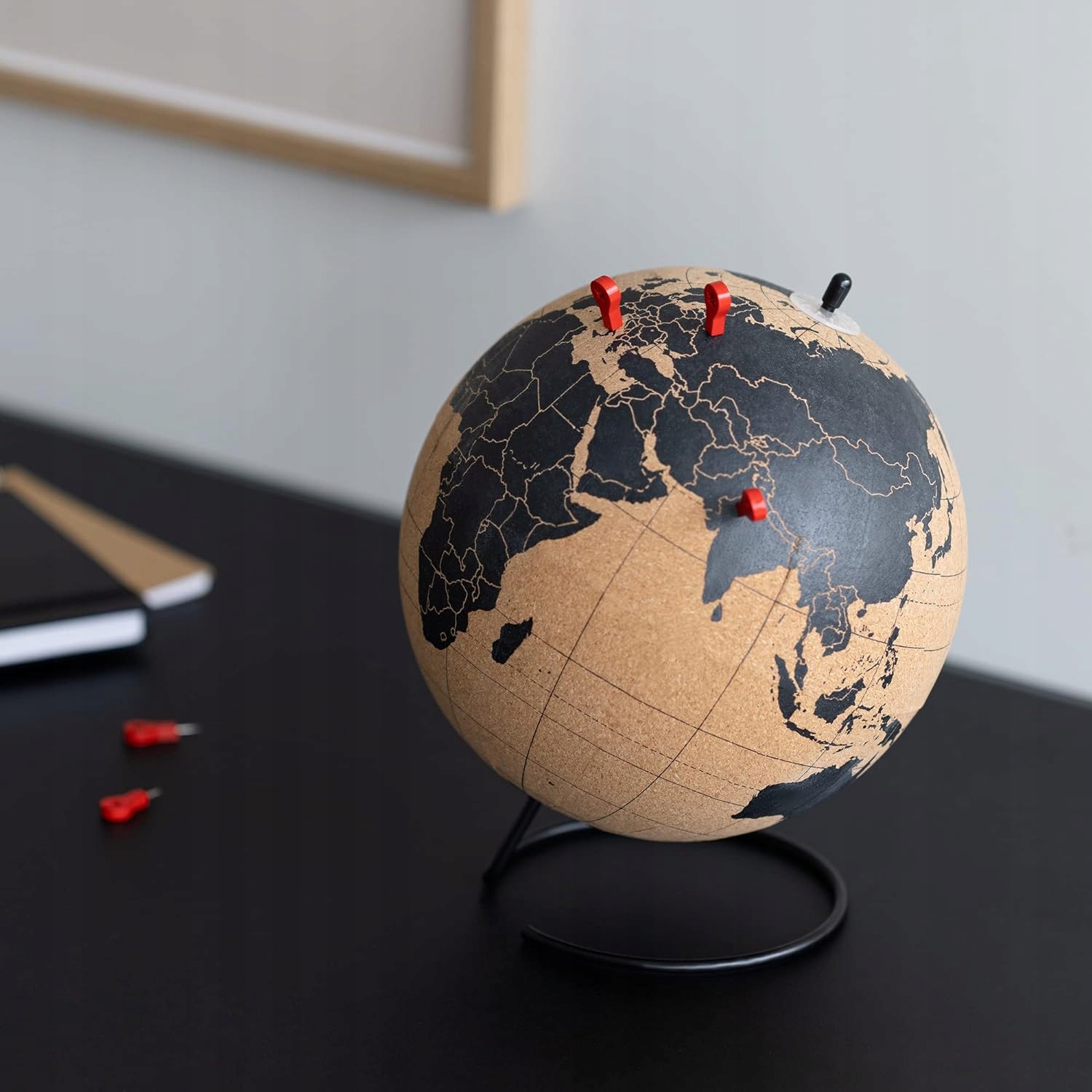 Цей глобус - це не лише стильна прикраса, але й практичний інструмент для позначення місць, які ви відвідали. Комплект включає 10 червоних дерев’яних шпильок, які дозволяють легко та естетичний вибір місць на карті. Ви можете з гордістю представити свої подорожі та надихнутись наступними пригодами.