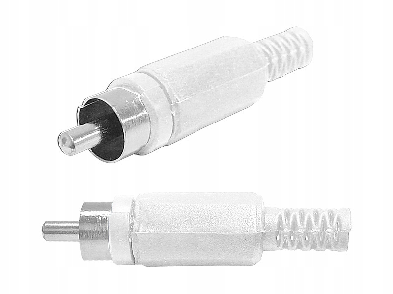 Високоякісний штекер RCA білого кольору. Вилка призначена для монтажу кабелю. Він гарантує чудову провідність сигналу без будь-яких втрат або перешкод.