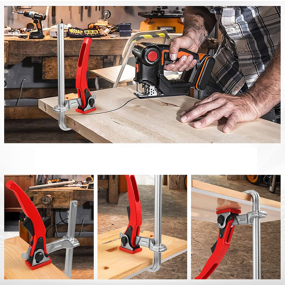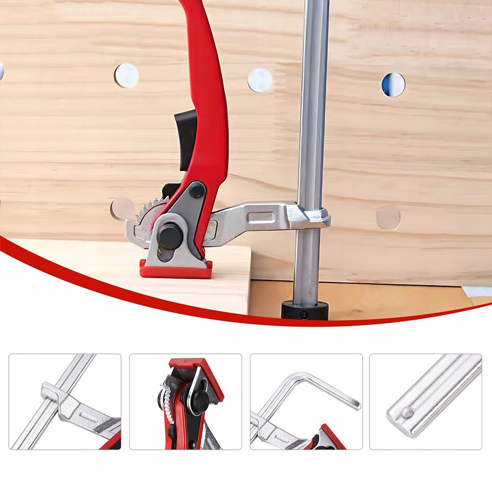 ✔️ Можна використовувати для швидкого затискання, звільнення та затискання деталей із різних матеріалів, таких як дерево, пластик і метал. - Простота у використанні: вставте циліндричні лещата в робочий стіл, потім покладіть пластину під затискач і відрегулюйте кут ручки.
