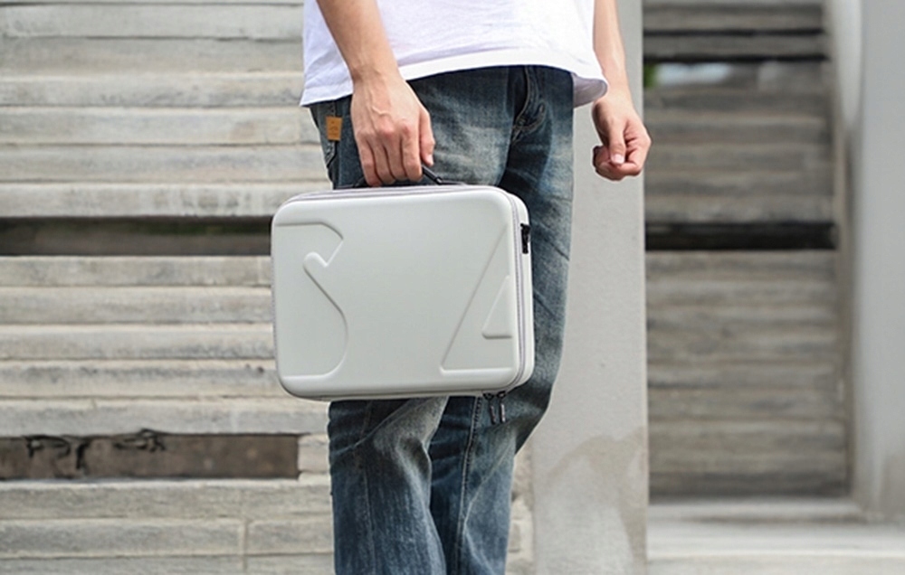 Корпус призначений для розміщення всіх ключових аксесуарів, необхідних для роботи з DJI Flip. Унікальна система зберігання дозволяє безпечно розміщувати зарядний пристрій, запасні гвинти, викрутки та заряджені кабелі. Крім того, вбудована частина дозволяє зберігати контролер, сумісний з RC 2 або RC-N3, а також оригінальною кришкою Gimbal. У випадку також є місце для центру для зарядного обладнання, в якому ви можете зберігати до п'яти акумуляторів - один у безпілотнику та чотири в центрі.