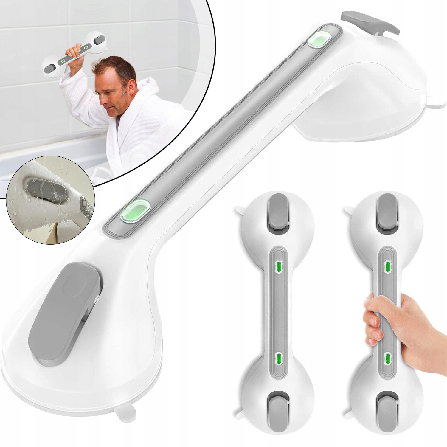 🚿 Індикатор безпечного встановлення: На обох кінцях ручки є два барвисті індикатори попередження, які дозволяють перевірити, чи всмоктування у вакуумі. Початковий індикатор стану світить червоний, а індикатор статусу вакууму в зеленому. Якщо індикатор світить червоним після встановлення, його слід відновити. Якщо індикатор світить зеленим, уважно перевірте, чи є захват стабільна, щоб забезпечити безпечне використання.