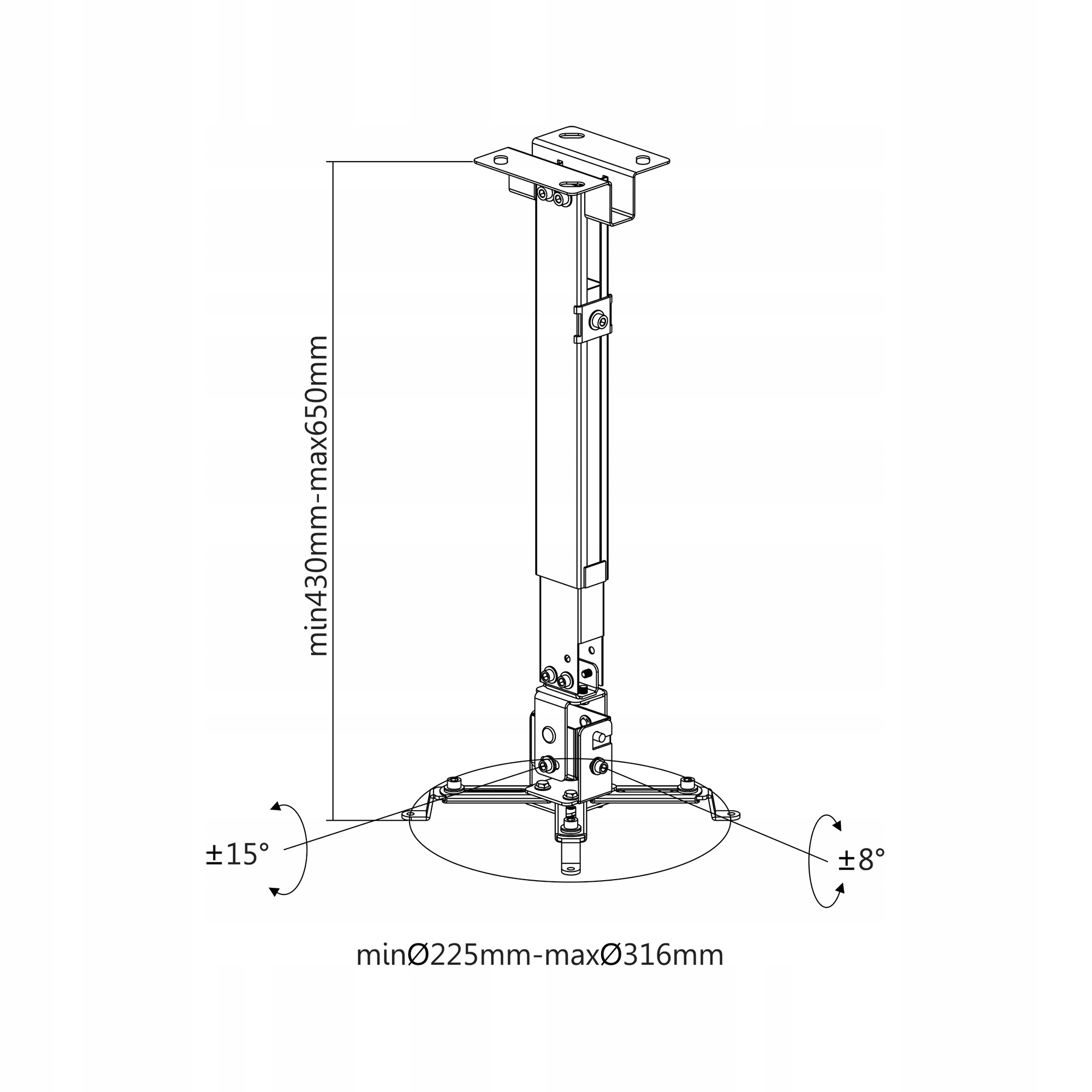 продумано, конструкція головки ручки дозволяє регулювати відстань від кріпильних отворів таким чином, щоб він відповідав більшості проекторів, доступних на ринку.