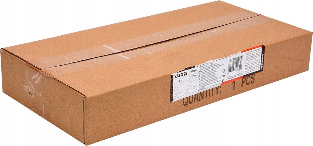 Набір упакований у лоток розміром 38,5 x 17,5 x 4,1 см, який підходить як для візків, так і для ящиків для інструментів YATO YT-09101 / YT-09102 / YT-09107 / YT-09108 і для шаф для обслуговування.