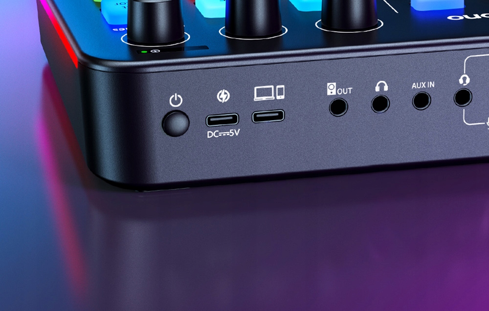 Mano G1 Neo - це універсальна звукова карта, яка підвищить якість вашої передачі та записи, надаючи професійний звук, інтуїтивно зрозумілий контроль та ефективне освітлення RGB. Компактний дизайн змушує вас легко помістити його на стіл, а вхід XLR дозволяє швидко встановити мікрофон.
