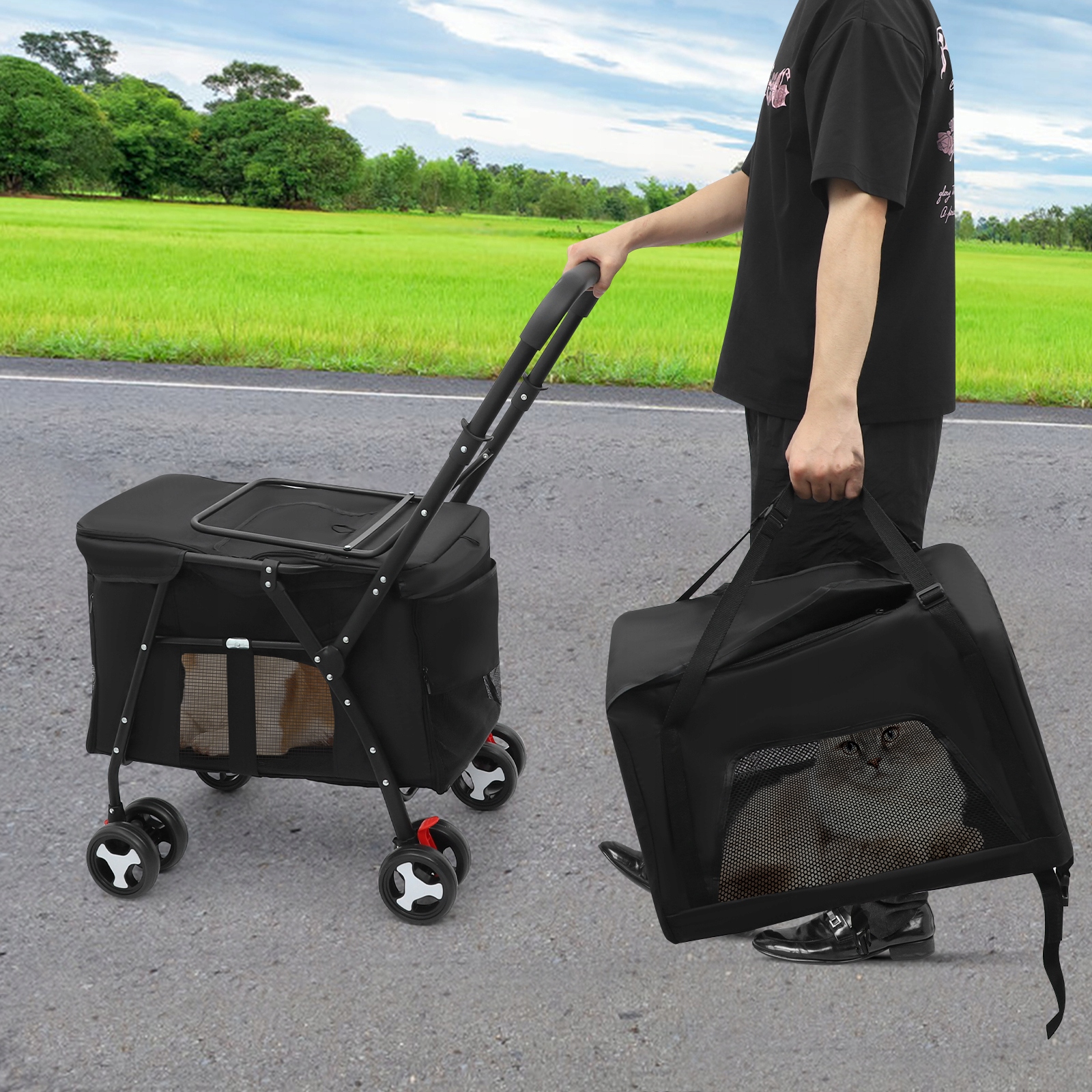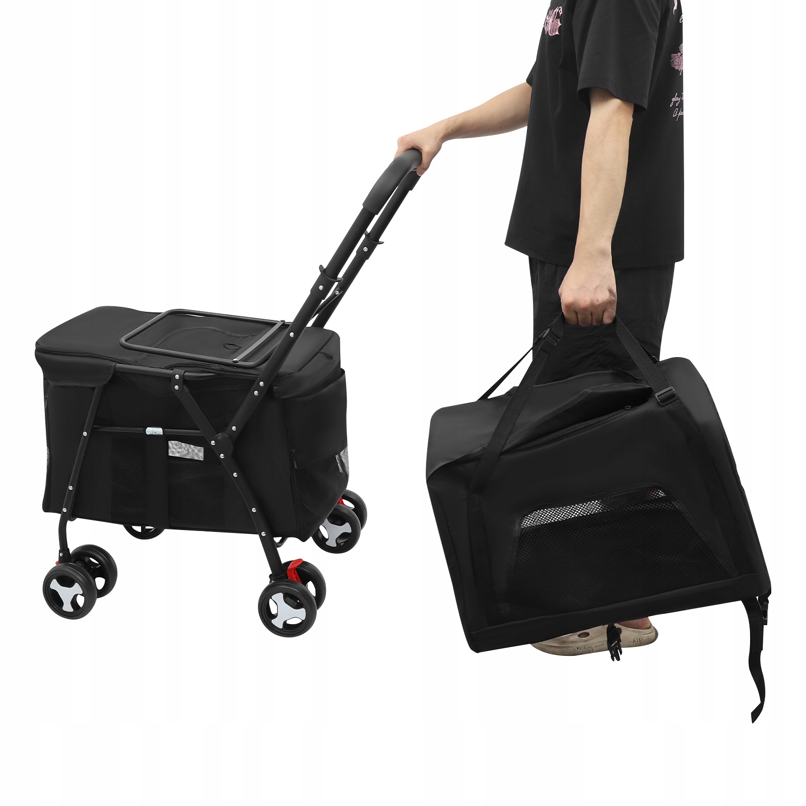 - Універсальний і компактний: верхня переноска перетворюється на сумку через плече для зручного транспортування, тоді як обидва шари можна скласти, що полегшує перенесення та зберігання, коли вони не використовуються.
