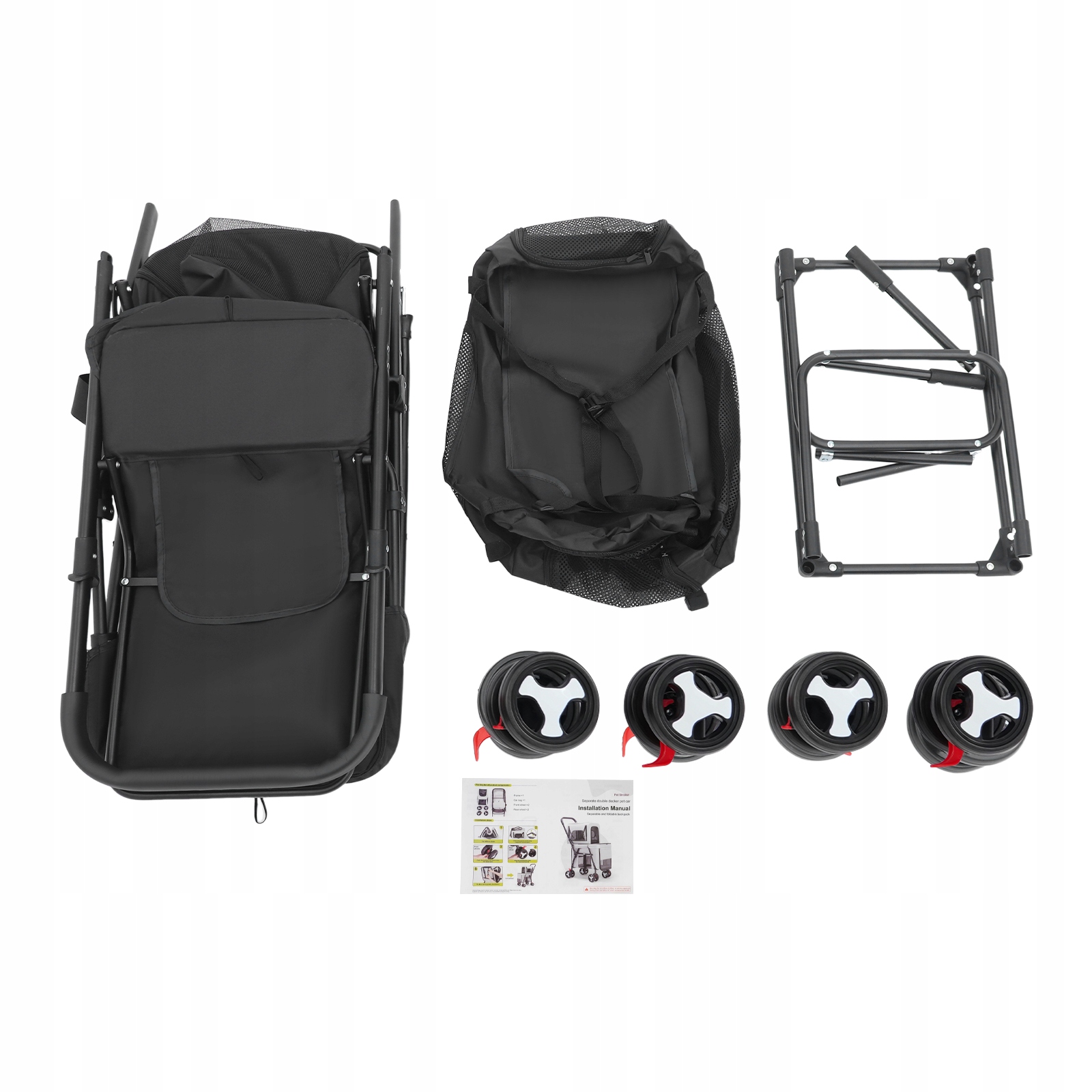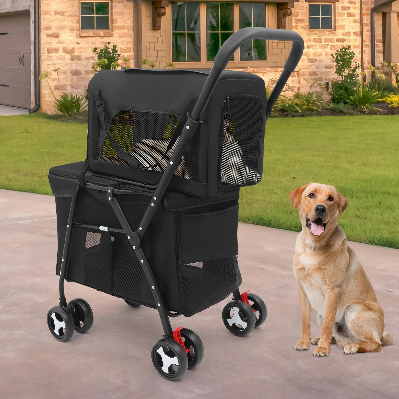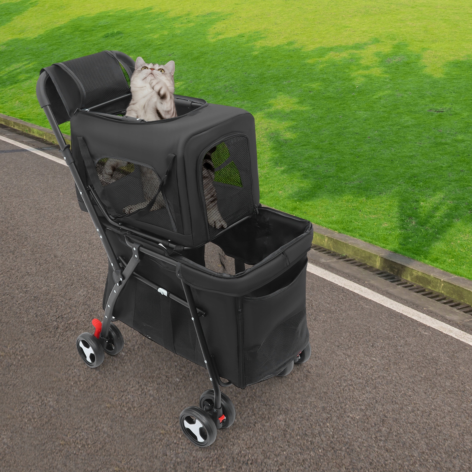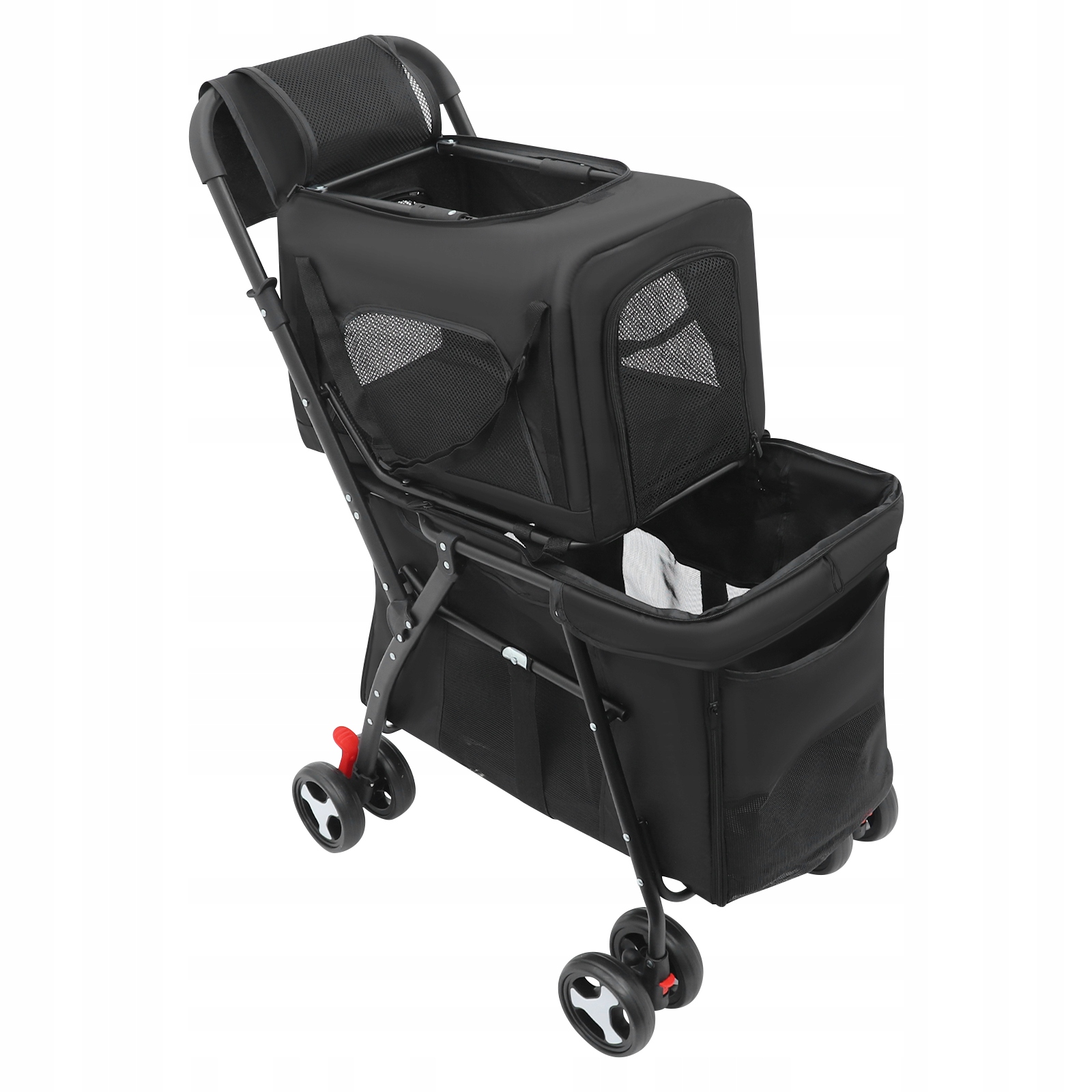 2-ярусна складна коляска для тварин зі знімною переноскою для собак і котів
